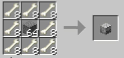 - Smithing table: bone block template + deepslate (base) + obsidian (addition).