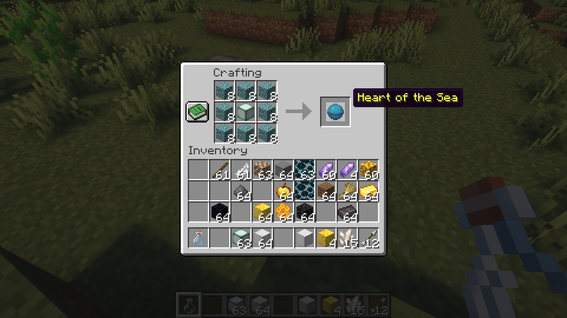 - Sea lantern in the center, prismarine blocks around it.