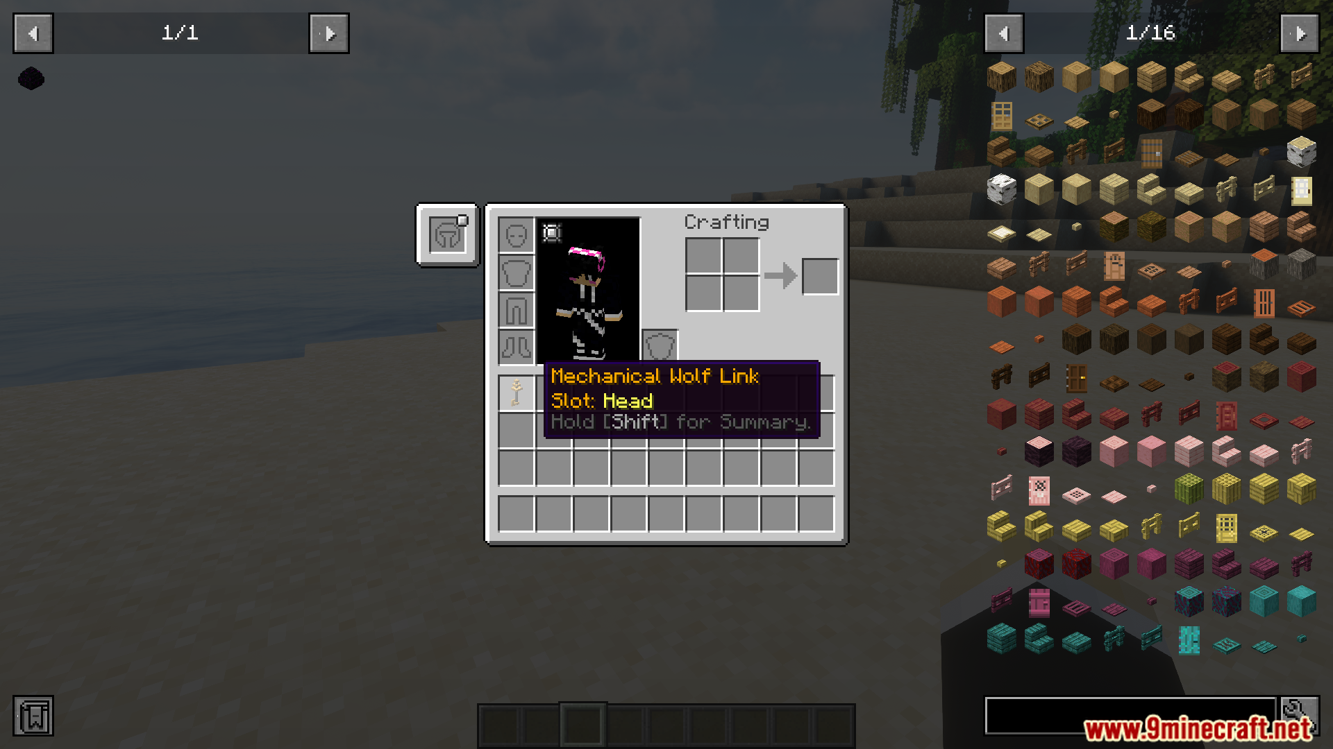 - Craft and summon via the Mechanical Wolf Link (Curios Head Slot), customizable with a module interface (right-click) or healable with a wrench.