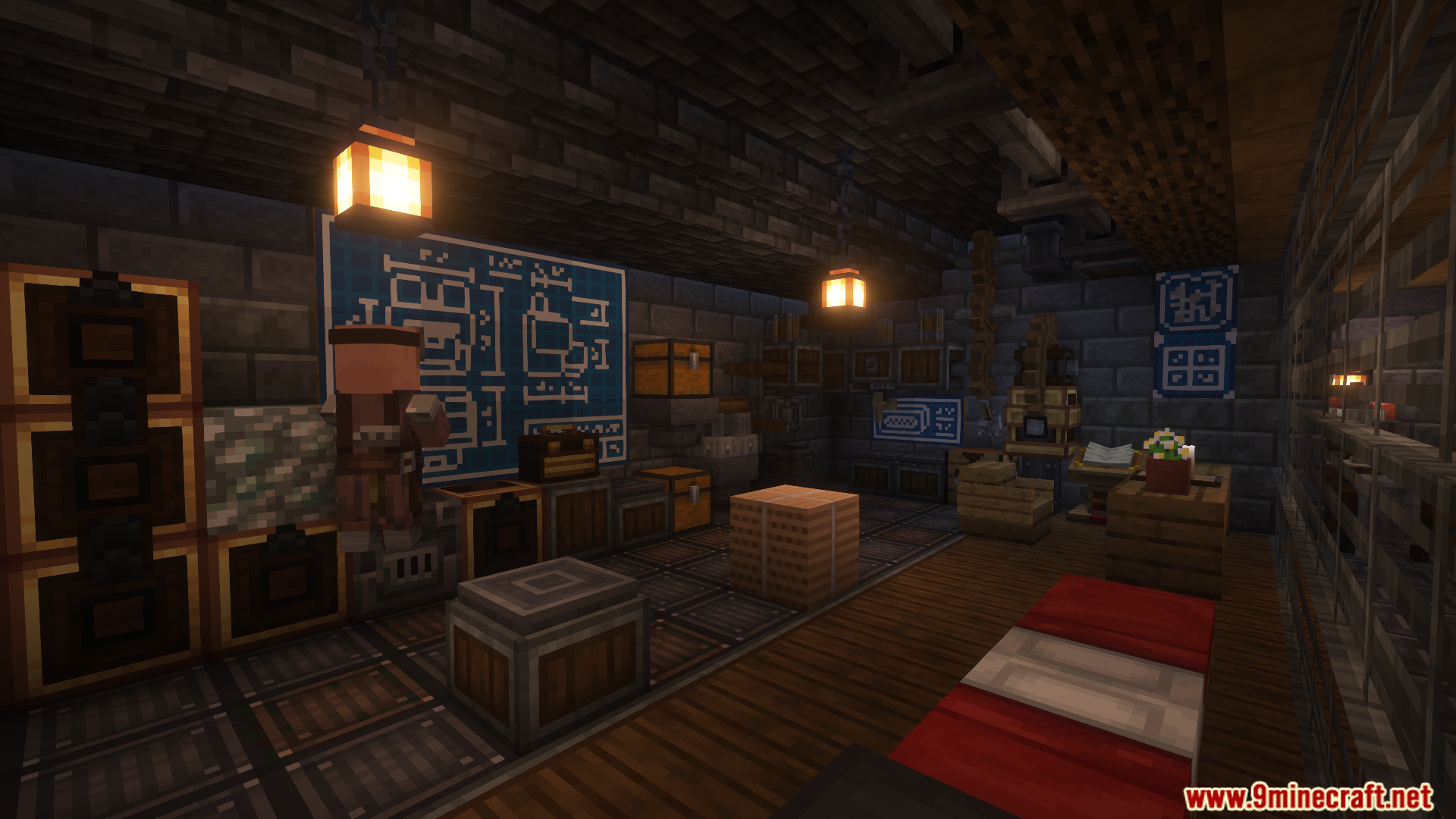 - Utility Modules such as Mob Radar (pings hostile entities), Mounted Light (portable light), Regenerative Casing (slow regeneration).