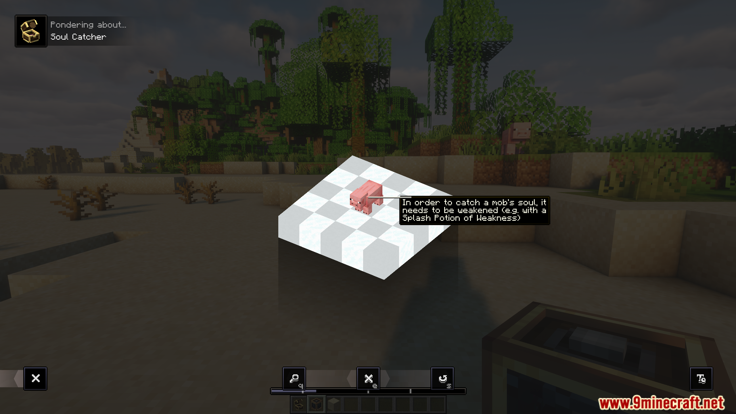 - Adds Soul Catcher, a tool that captures mob souls when they’re weakened (e.g., by a potion of weakness).