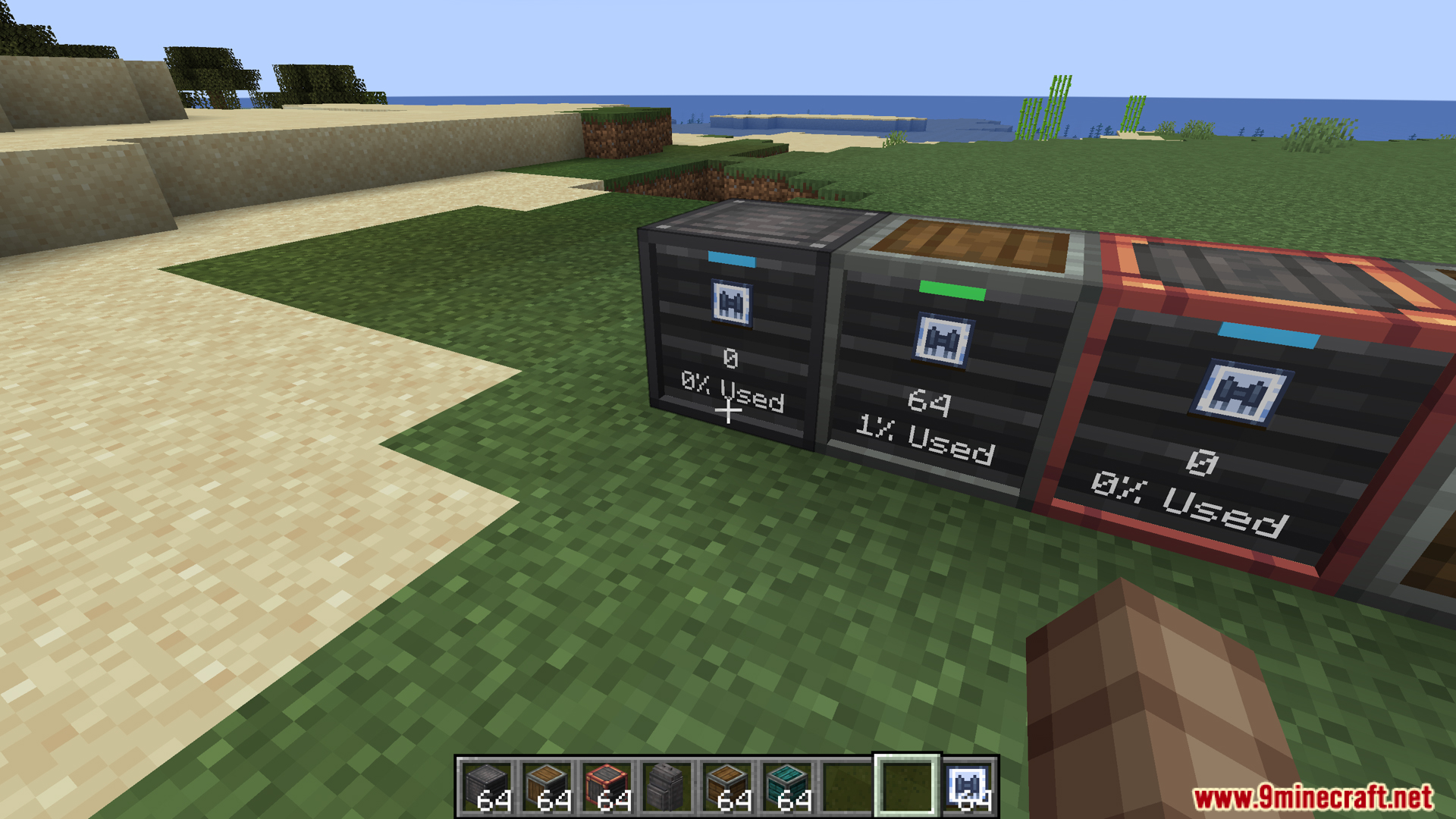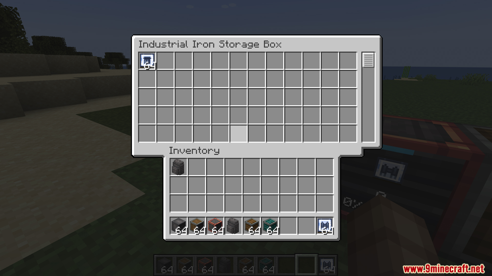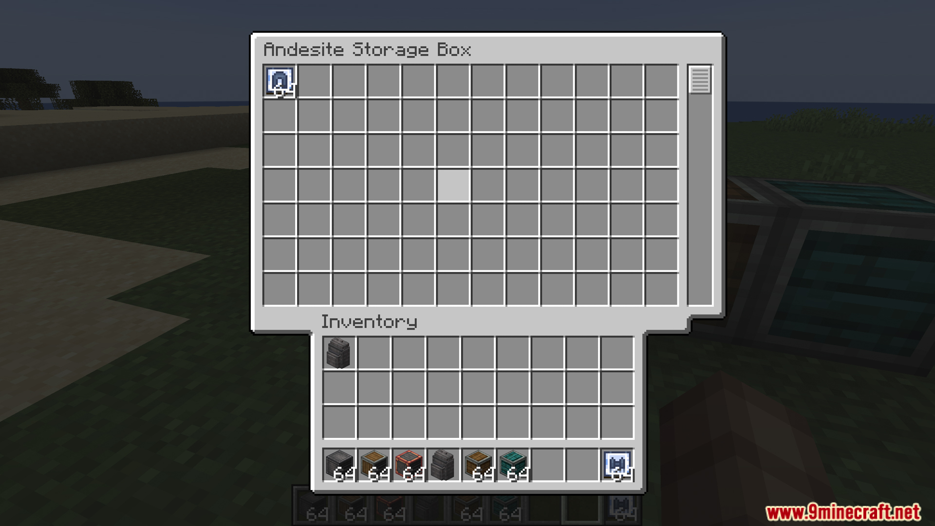 - Storage Boxes come in various sizes and materials such as Industrial Iron, Andesite, Copper, Brass, and Hardened, each with different capacities and functions. Storage boxes have filter slots on the front to specify items to be added or removed, along with a display showing the capacity and full/empty indicator lights. Players can add or retrieve items from the box even without opening the GUI.