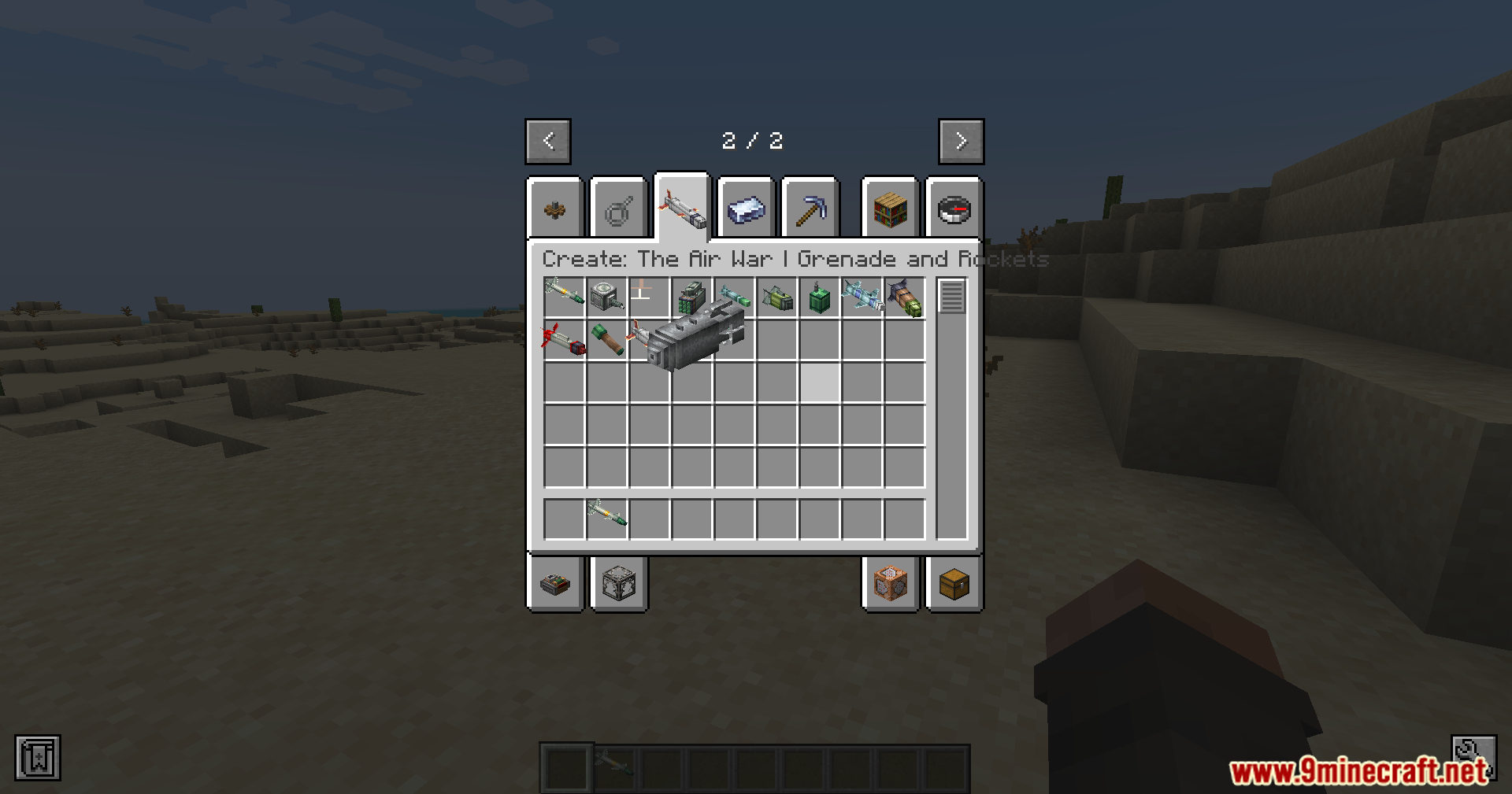 Create The Air War Mod (1.20.1, 1.20) focuses on adding a range of weapons intended for aircraft and airborne platforms, allowing players to simulate air warfare between different factions or nations. Its scope is limited to combat equipment and does not introduce flight mechanics or vehicle systems by itself.