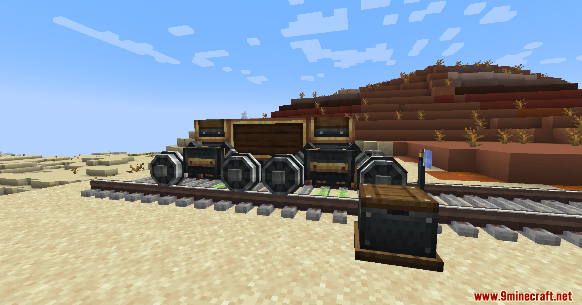 Create Trains On Trains Mod (1.20.1, 1.20) modifies how bogeys behave when attached to train carriages. It allows bogeys that are glued to a carriage but not directly aligned with or connected to tracks to move correctly alongside the train during operation.