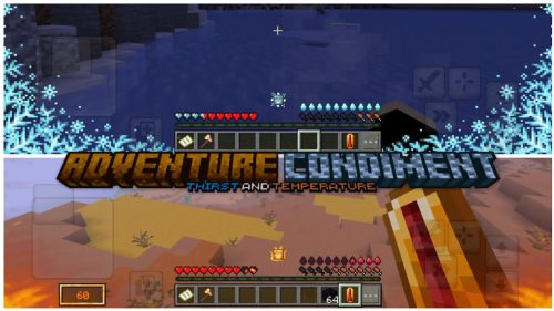 Adventure Condiment Addon (1.21) adds realistic thirst and body temperature mechanics to make survival more challenging and immersive. Manage hydration alongside hunger, adapt to biomes/weather/fire with craftable gear, or suffer…