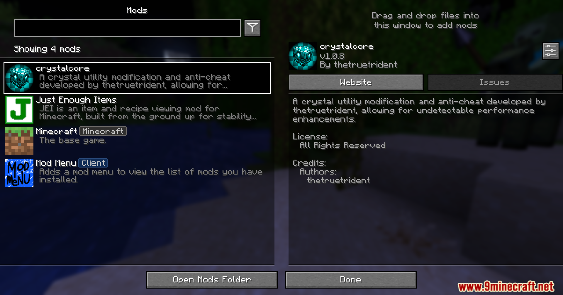 Crystalcore Client Mod (1.21.11, 1.20.1) Download Links