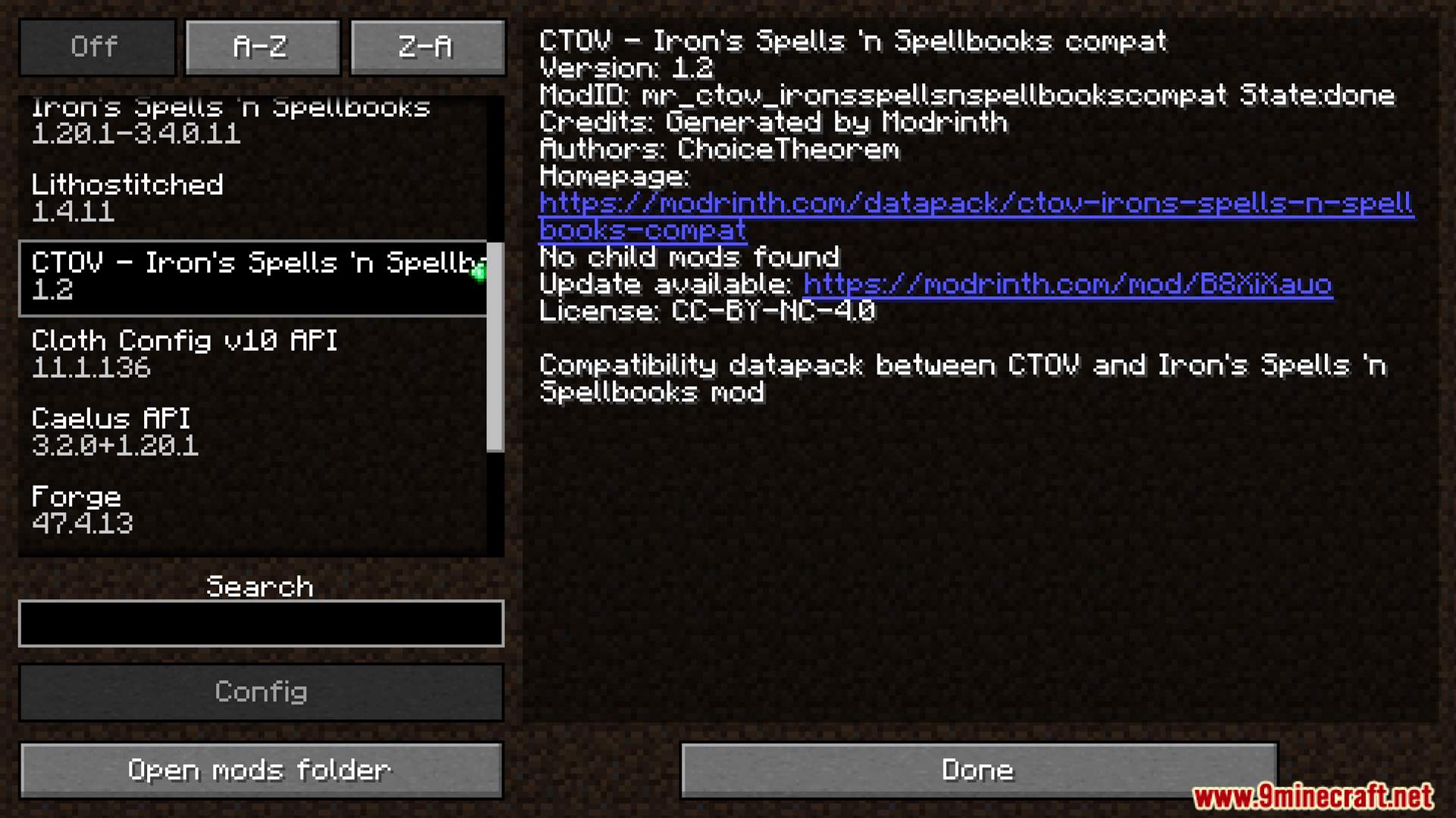 CTOV Irons Spells N Spellbooks Compat Mod (1.20.1, 1.19.2) Download Links