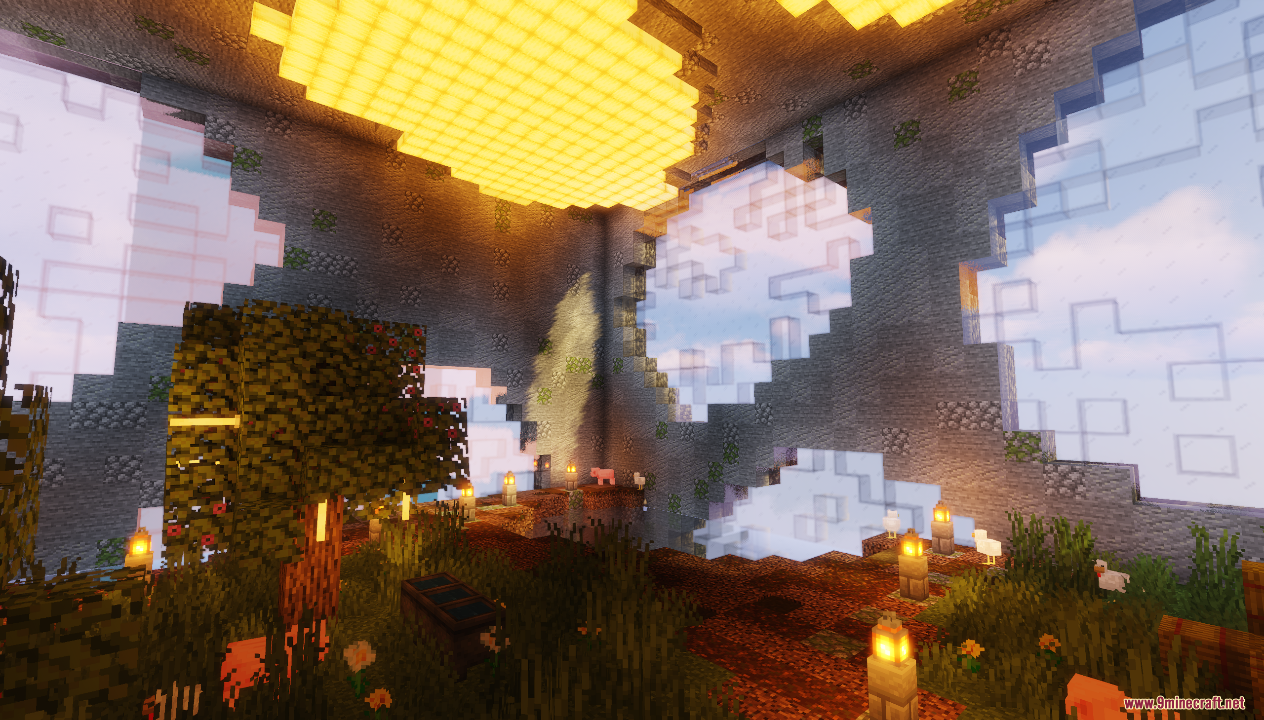 Cubic Village Map (1.21.11, 1.20.1) presents you with a striking and unconventional build that blends massive geometric structures with natural terrain. The island is a unique survival-focused build centered around a massive cube filled with layered terrain and multi-level farms. Inside, the structure houses stacked farming areas, natural landscapes, and functional spaces designed to support long-term survival gameplay. Blending bold geometric design with practicality, the village offers a striking yet livable environment for players looking for something truly different.