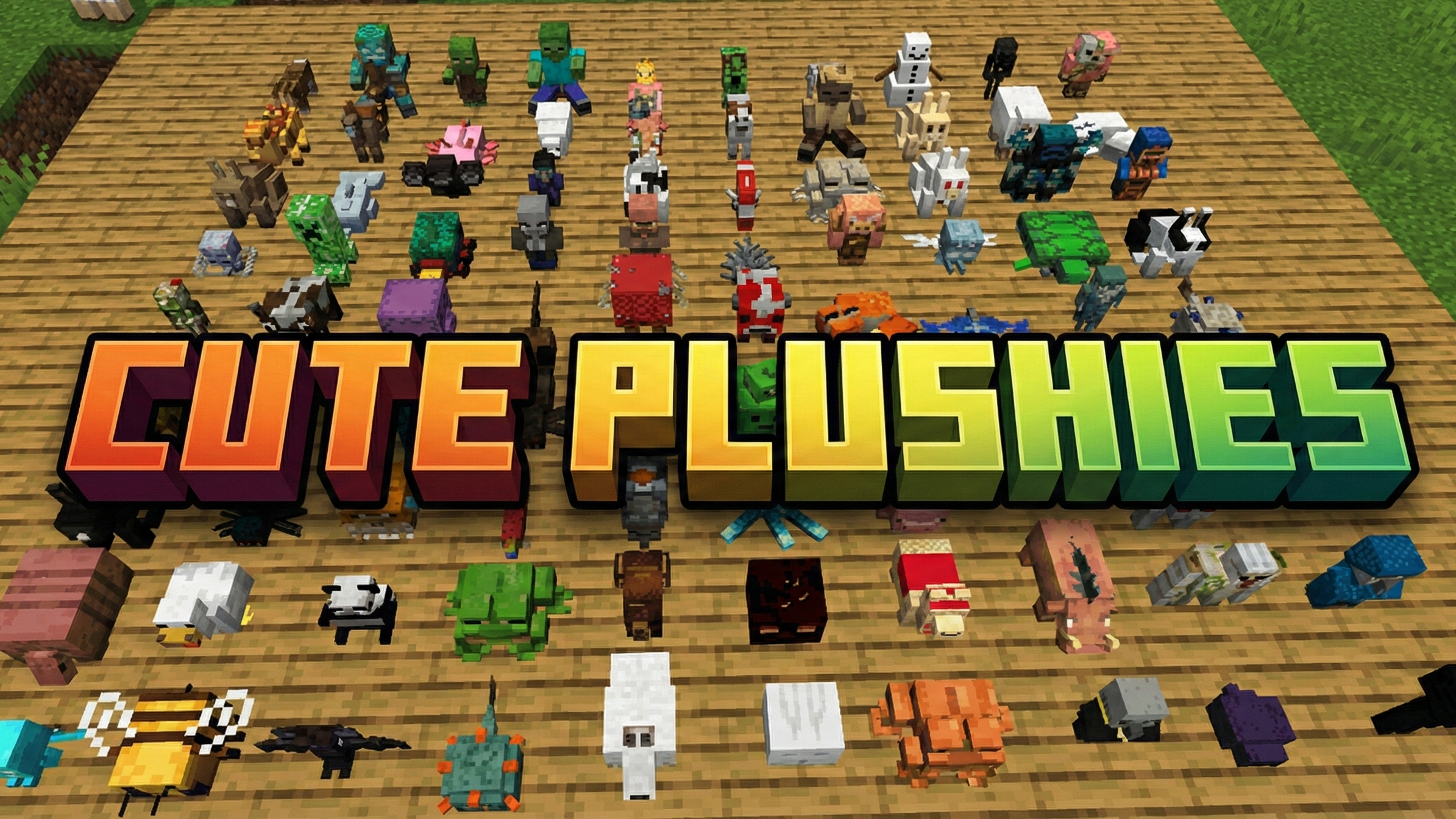 Cute Plushies Addon (1.21) is an unofficial adaptation of the Plushies Mod from the Bedrock version. 90 types of plushies have been added to the game’s item list.