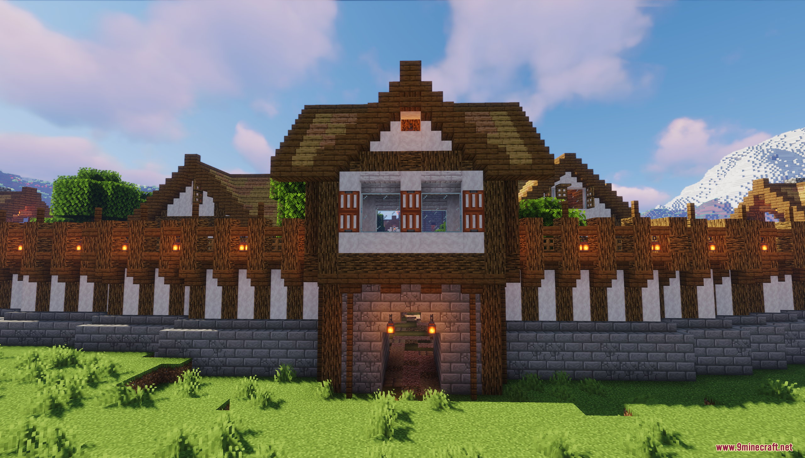 - Circular fortified wall built with stone bricks and timber, giving this village a strong and authentic medieval perimeter