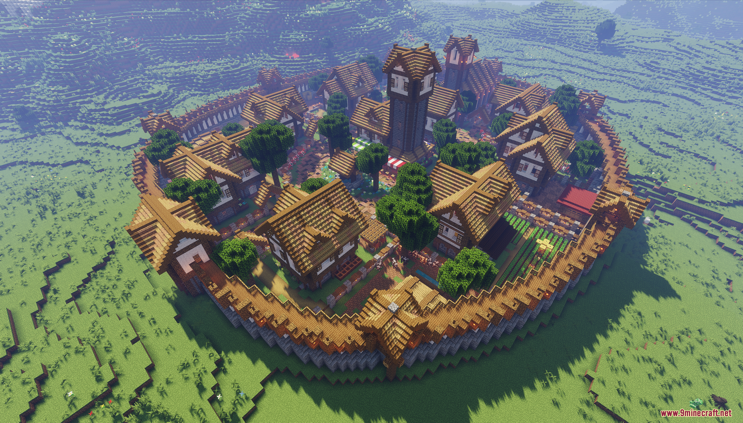Dalianka Map (1.21.11, 1.20.1) is a charming circular medieval village set in a peaceful valley, surrounded by soft hills and distant snow-covered peaks. Built as part of a larger world project, it features a fortified stone-and-timber wall, nine fully decorated houses, a central watchtower, a small church, and a cozy market square. Compact, atmospheric, and beautifully detailed, it’s an ideal add-on for any medieval build or roleplay world.