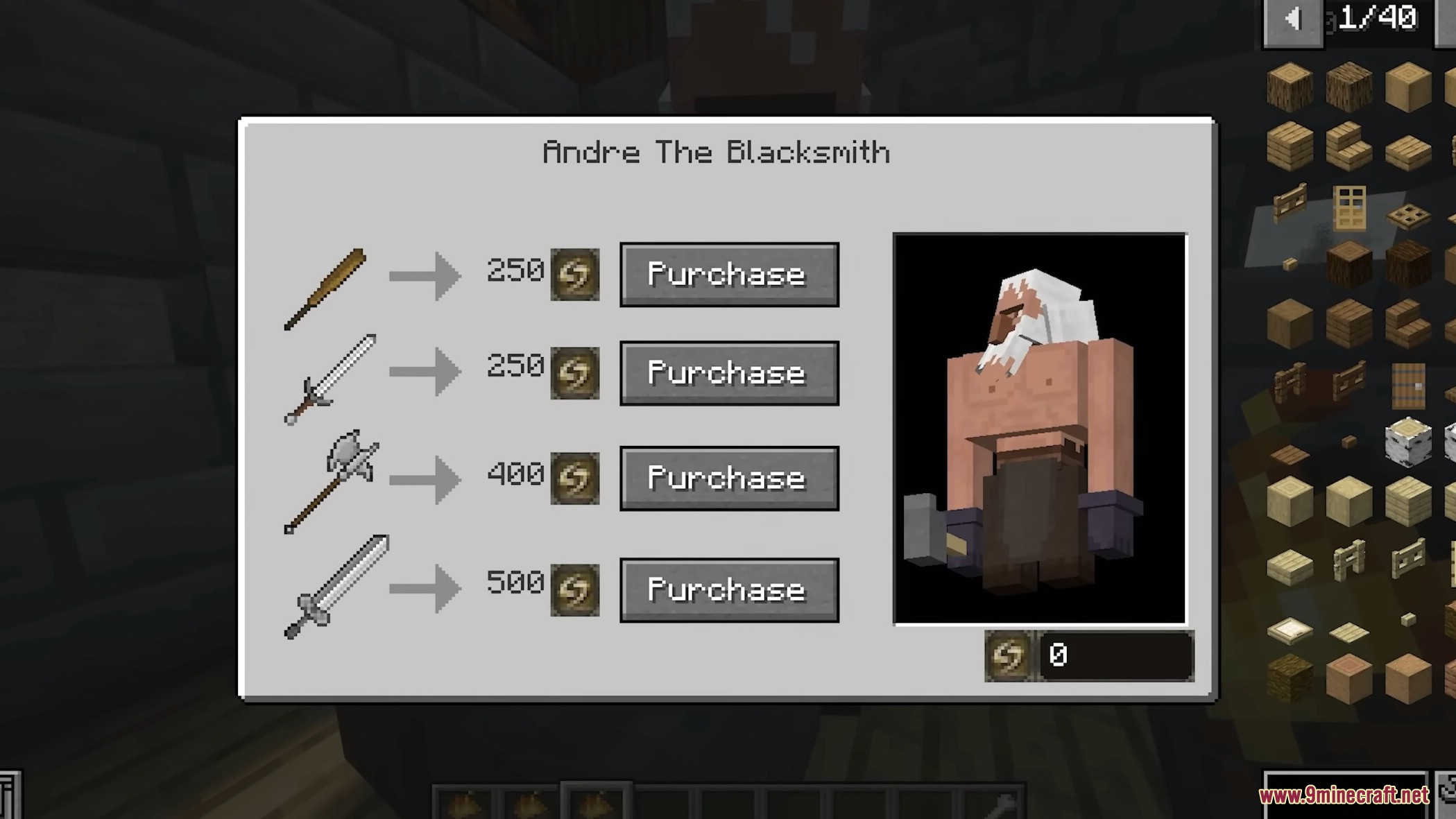 - Buy new weapons and items from the blacksmith