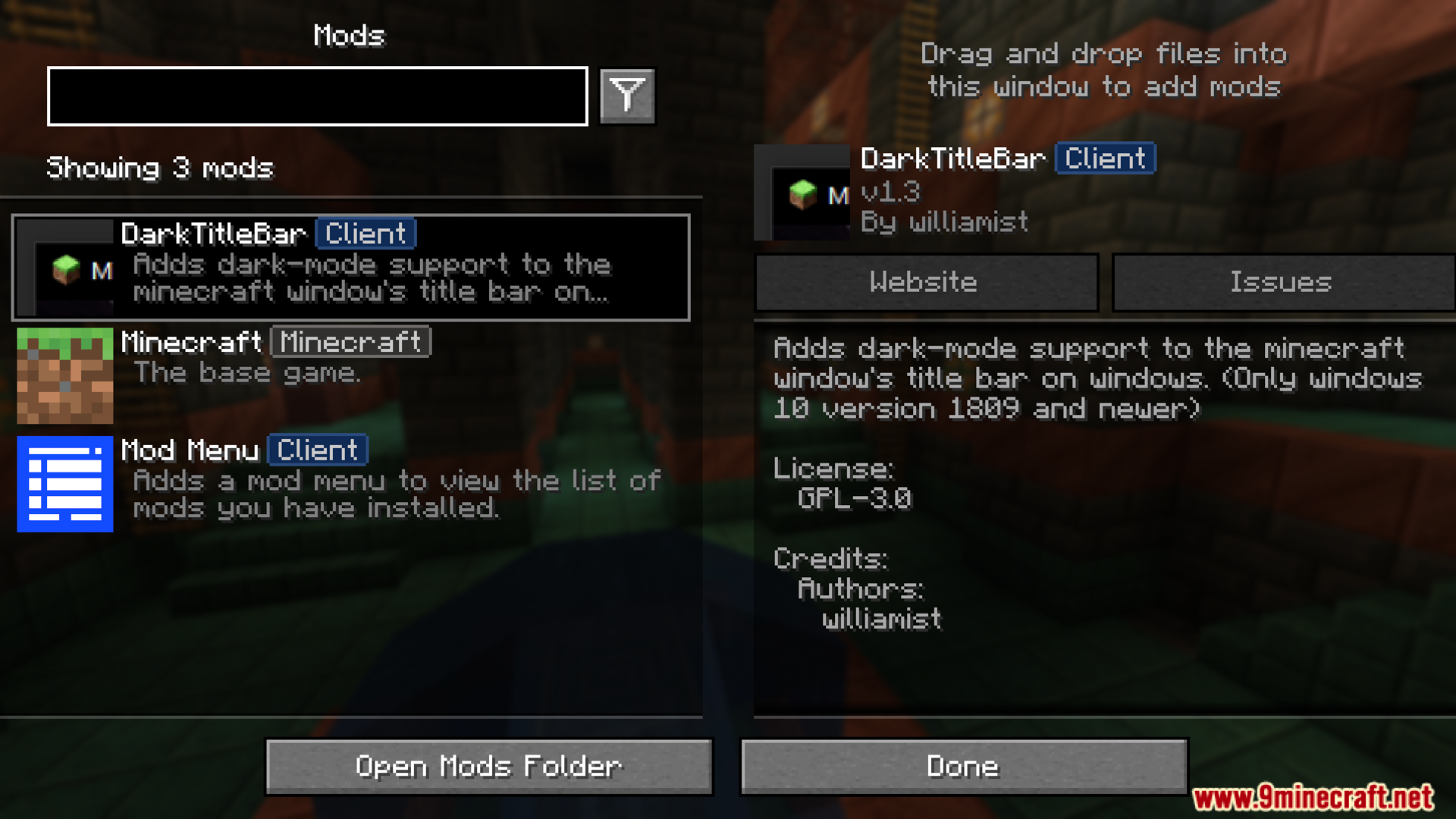 - Windows 10 or later (version 1809 or later) is in dark mode, the mod will automatically change the Minecraft window title bar to dark instead of the default white color.