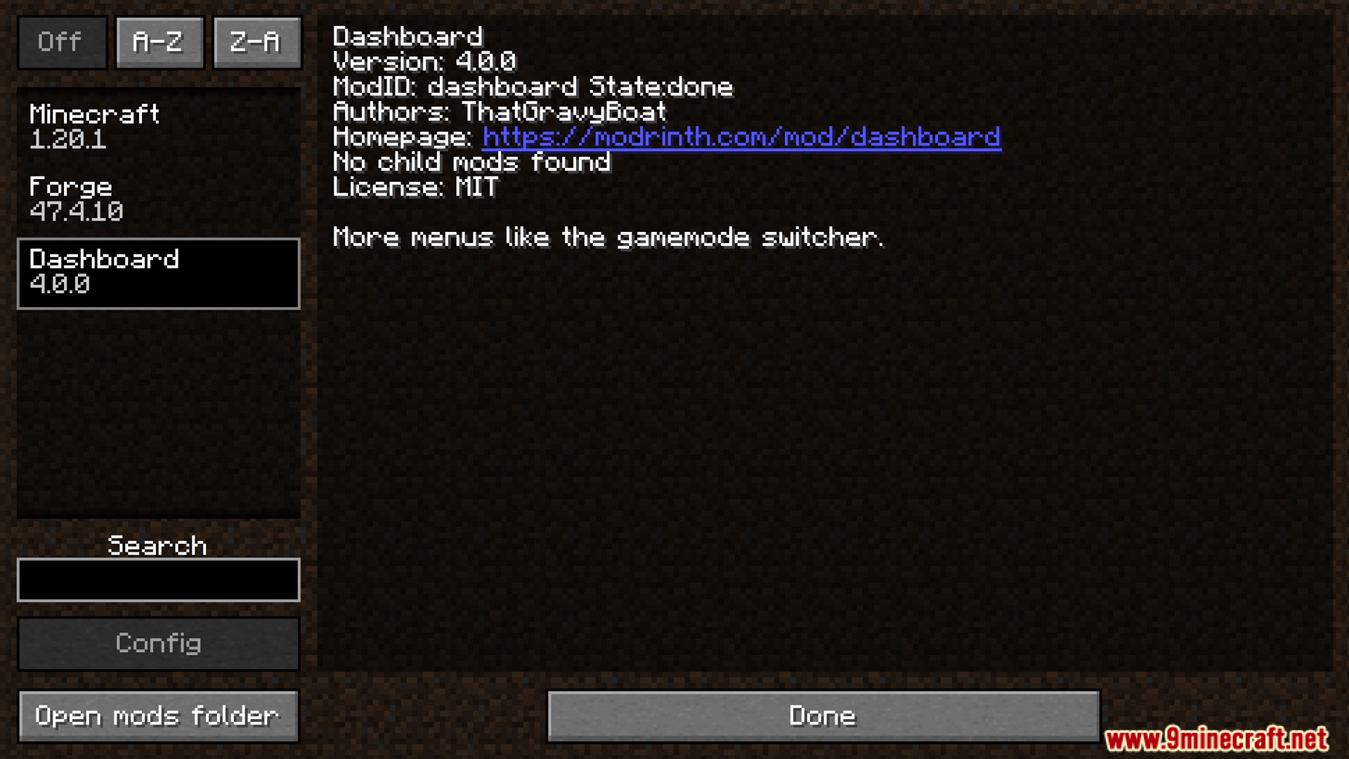 Dashboard Mod (1.20.1, 1.19.4) Download Links