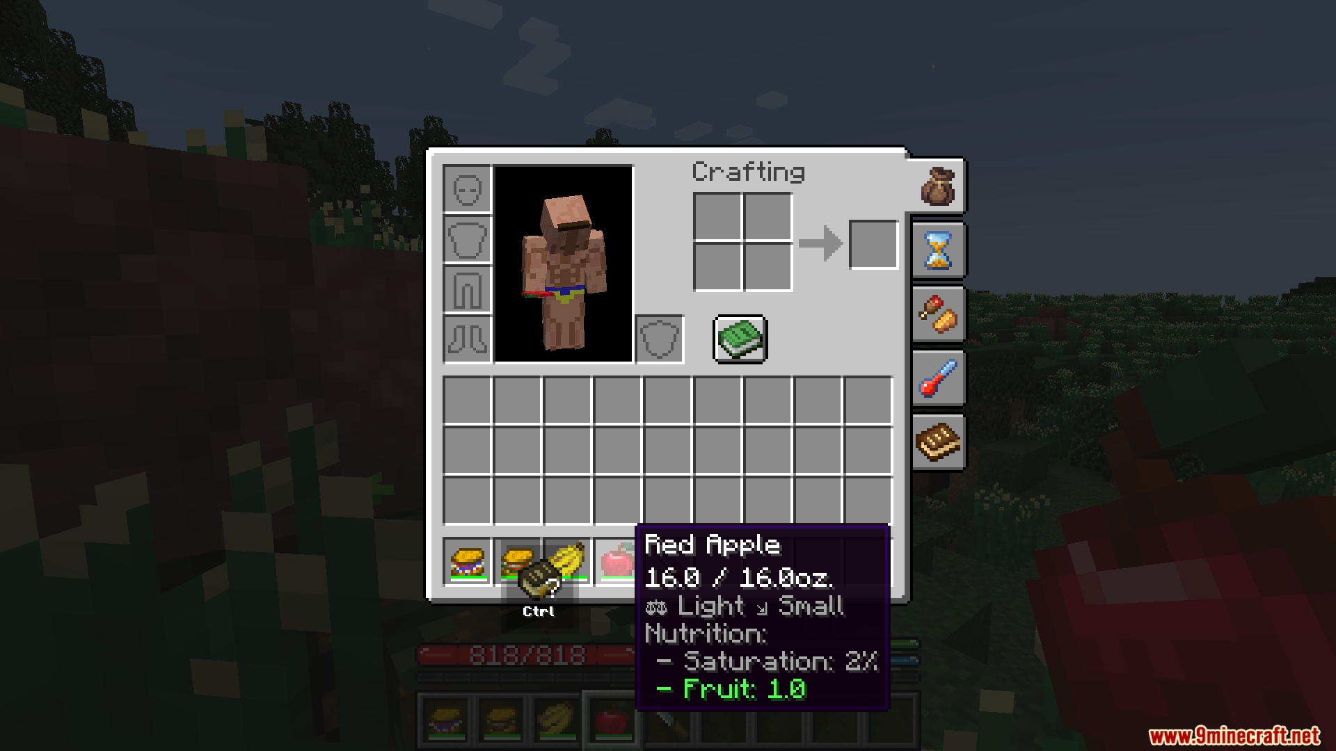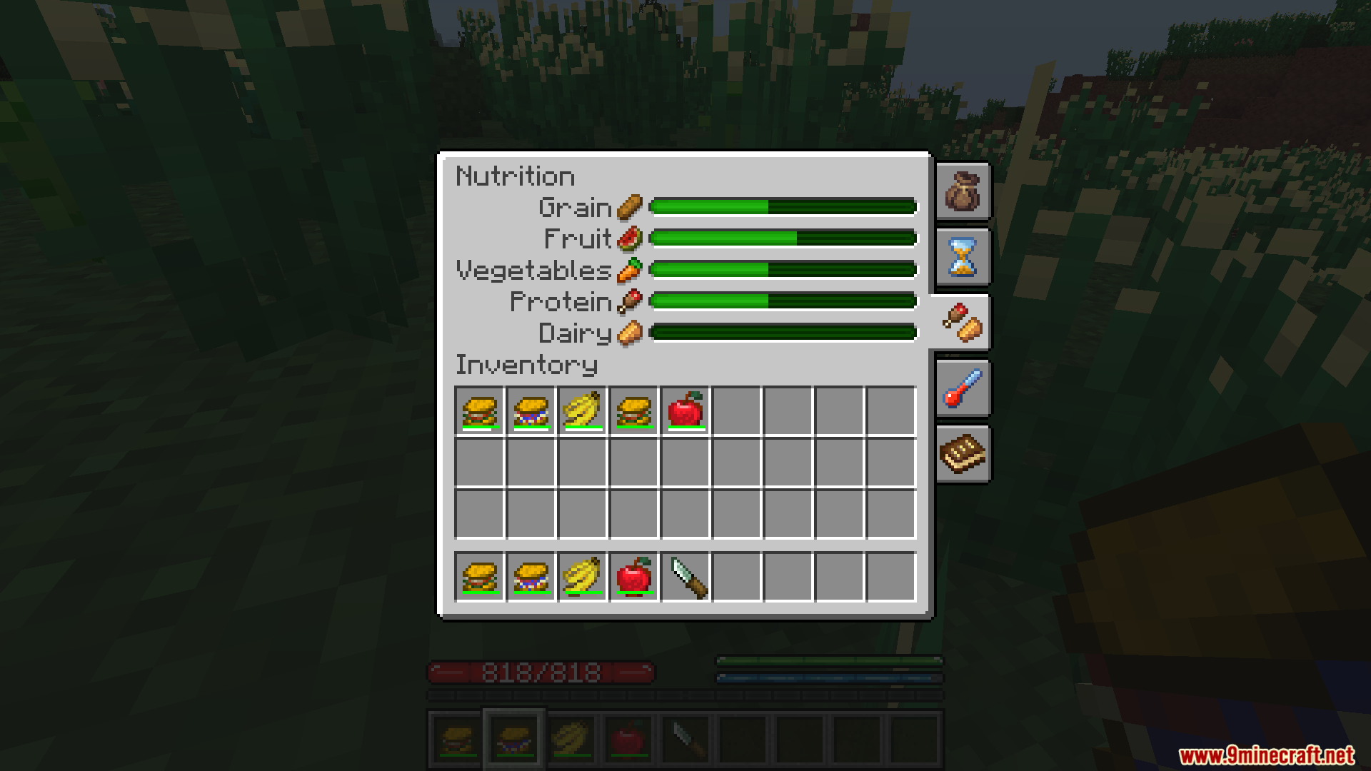 Decay 2012 Mod (1.21.1, 1.20.1) is a TerraFirmaCraft addon that restores the classic 2012-style food mechanics-showing food weight and decay as bars, and allowing players to cut decay off food items with a knife.