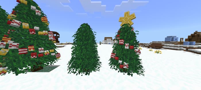 Deco Christmas Addon (1.21) provides players with Christmas decorations such as Christmas trees, gifts, Santa Claus and decorative lights.