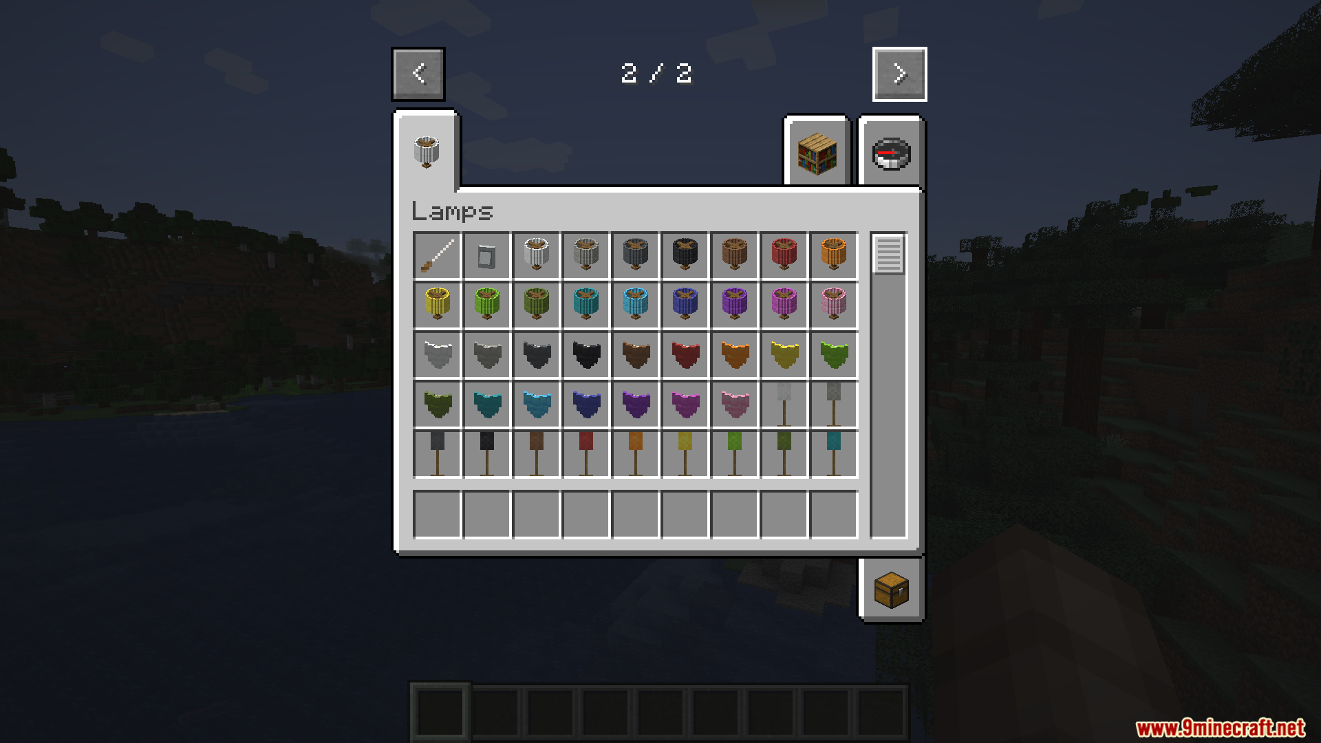 Decorative Lamps Mod (1.21.1, 1.20.1) adds a wide variety of stylish, dimmable, and redstone-compatible lamps to enhance building aesthetics and atmosphere.