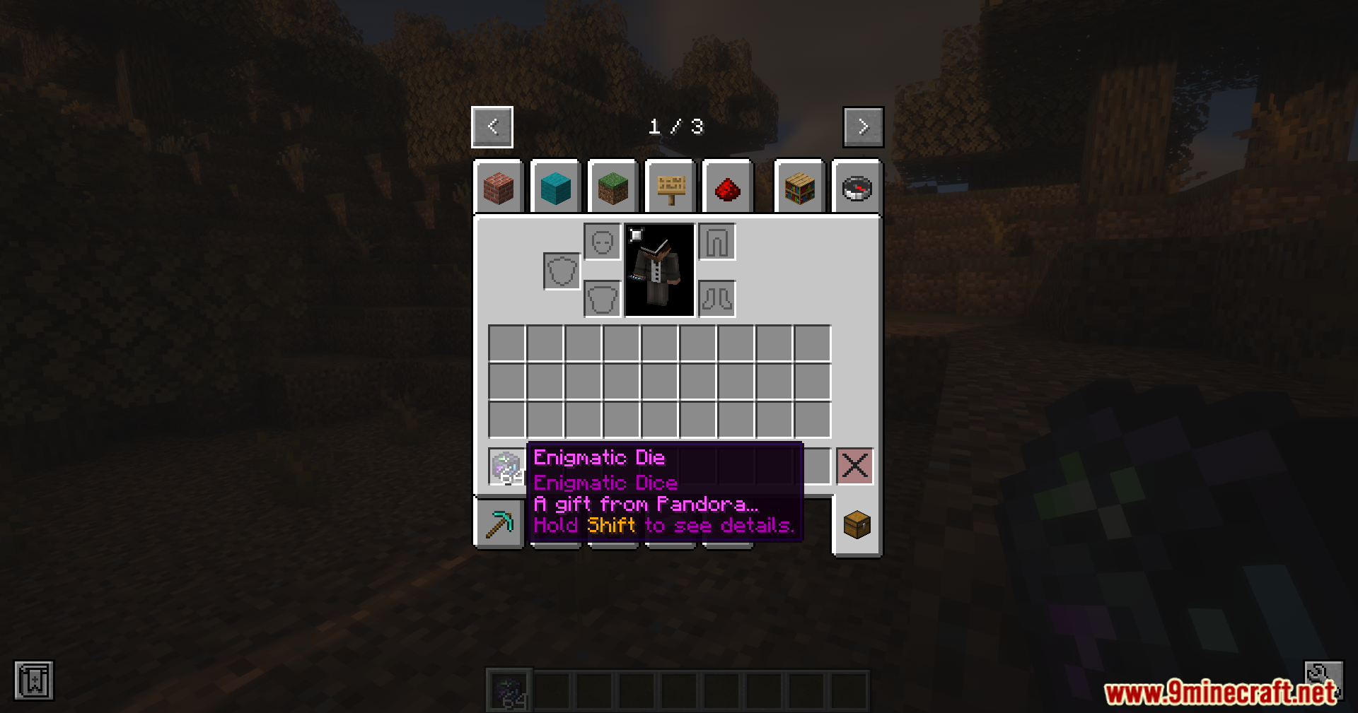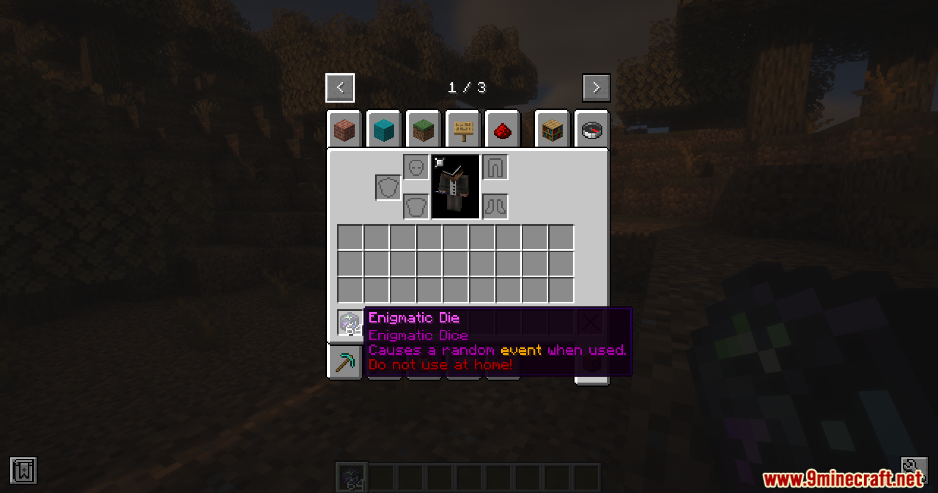 - Find Enigmatic Dice in chests (10%), from mobs (0.5%), blocks (0.1%), or by completing achievements.