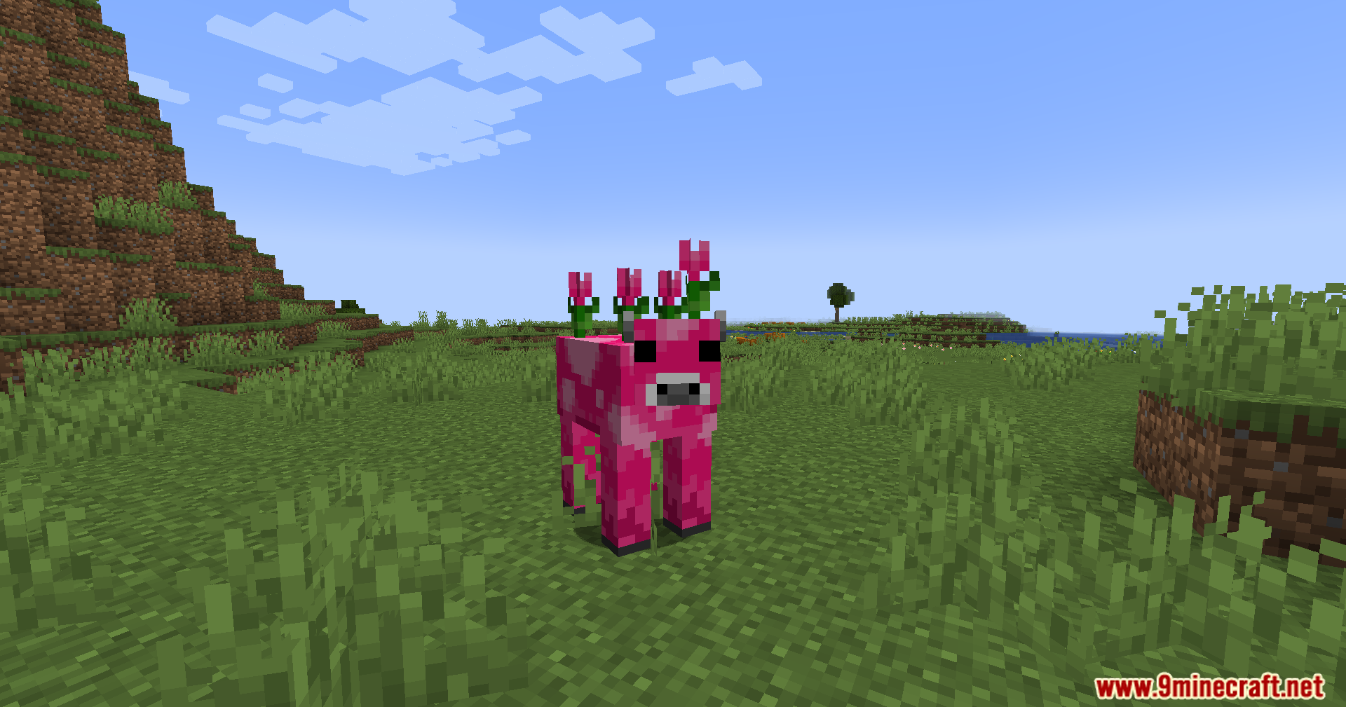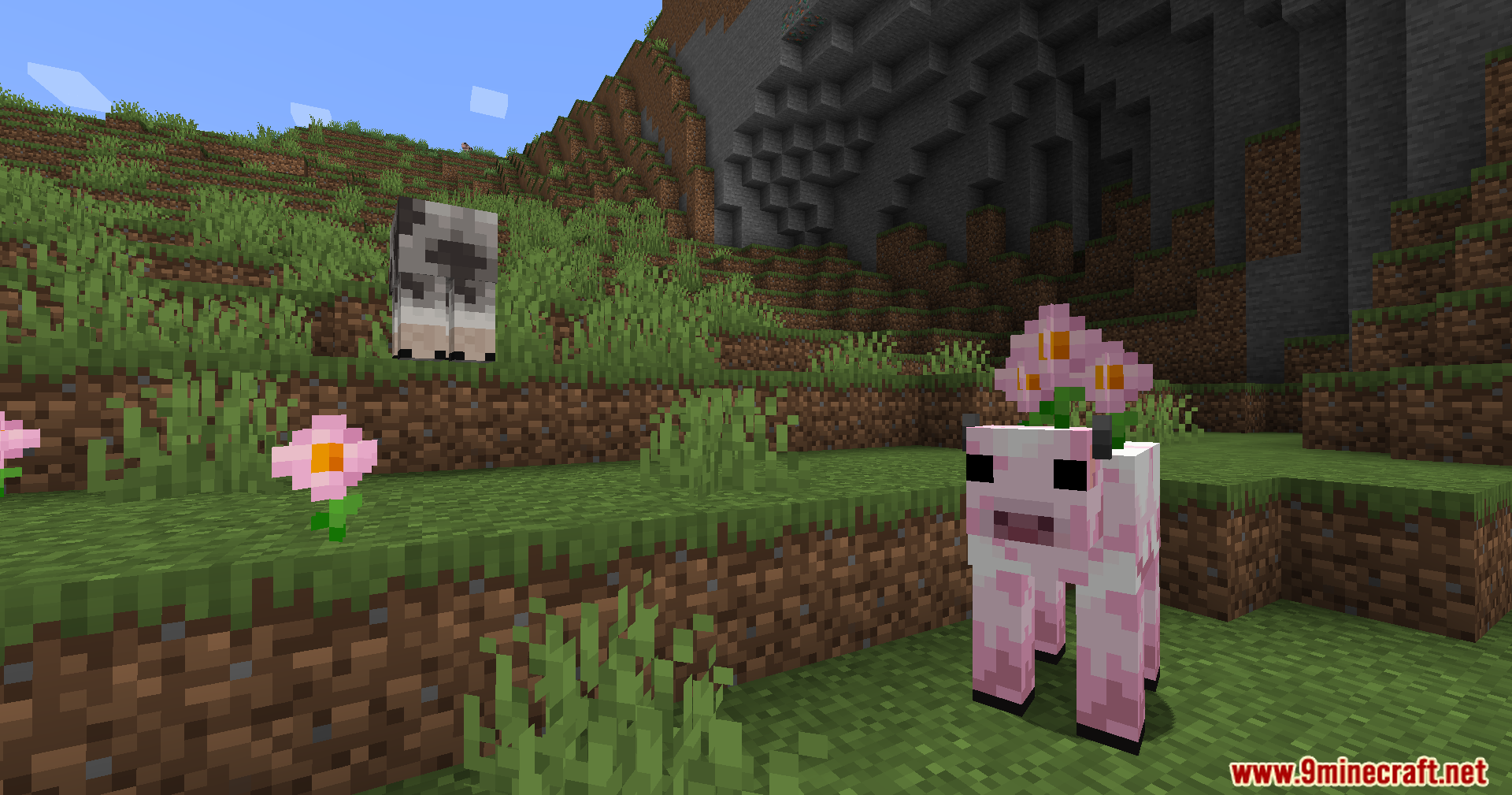 - Expands cow variants with Moobloom, Moolip, and Pink Moobloom, including flower-planting behavior and special milking results