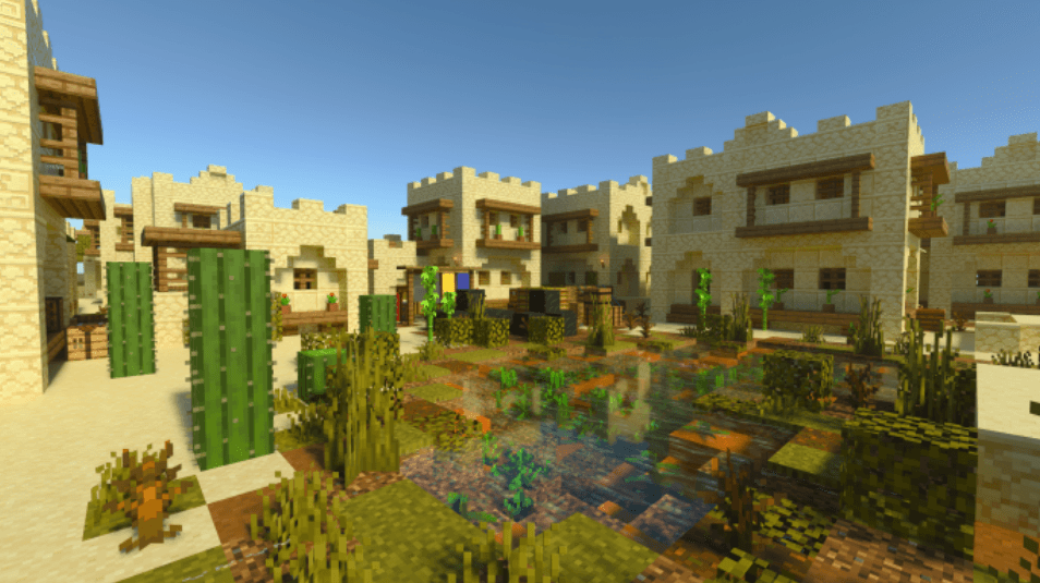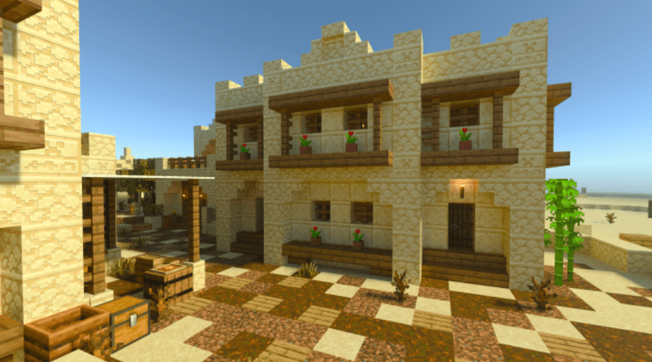 Desert Village Map (1.21) is a desert village map with many buildings built from sandstone. These buildings have both exteriors and interiors. The map is designed to be played in survival mode by default, but can also be switched to creative mode if desired.