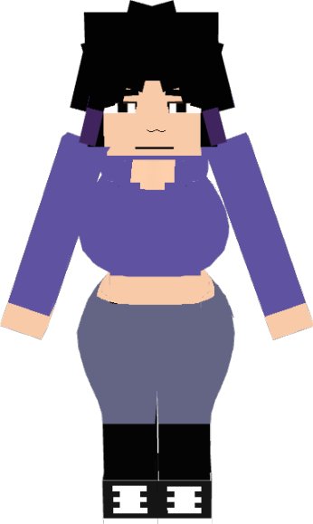 Director Vivian Jenny Mod Model transforms Jenny into a female character with a modern and strong style. She has long black hair with bangs covering her forehead, wears a purple long-sleeve crop top, tight gray pants, and black-and-white sneakers. Her figure is full, confident, and stands out with the demeanor of a leader.
