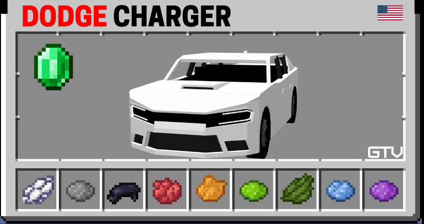 Dodge Car’s Addon (1.21) adds Dodge models, including muscle cars and SUVs. The addon also adds a crafting system with custom parts and many other interesting features.