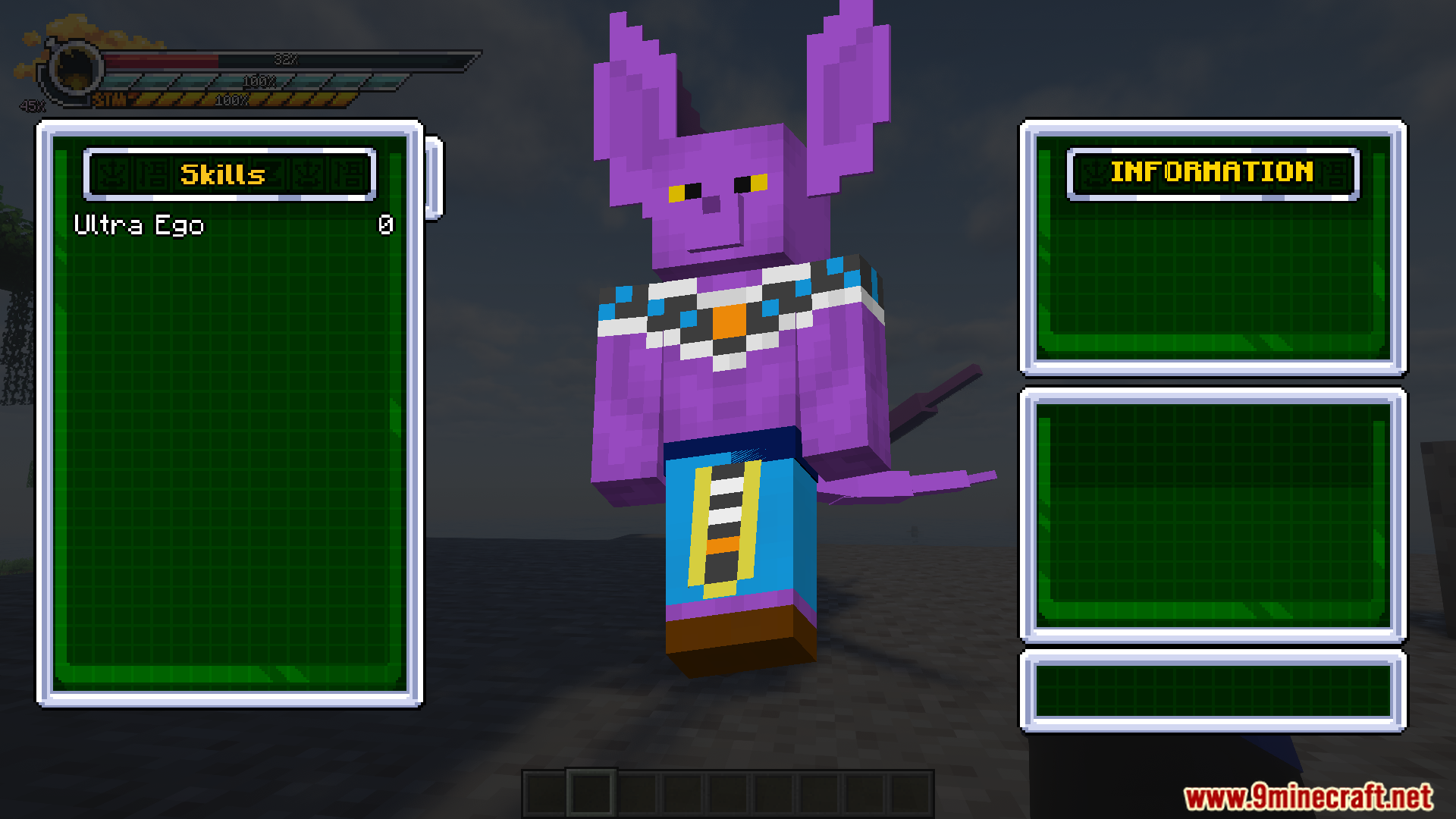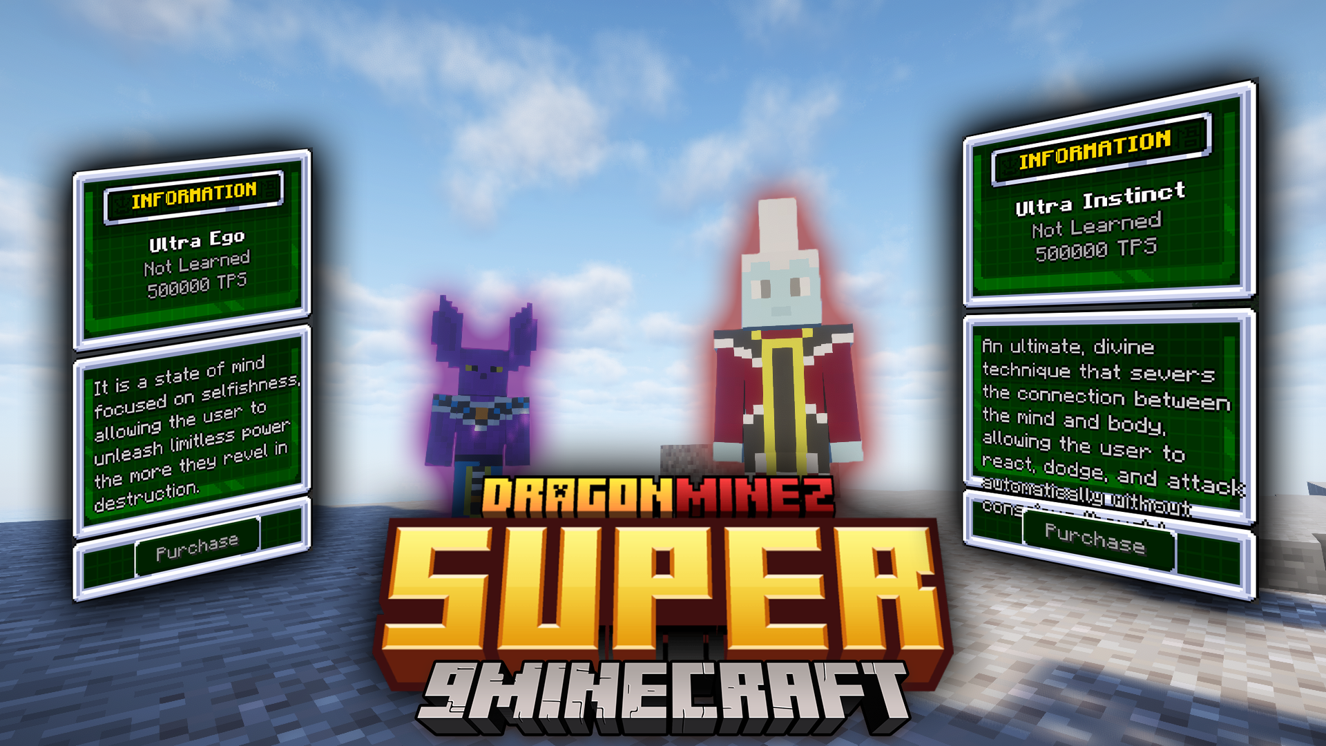 Dragon Mine Z Super Mod (1.20.1, 1.20) introduces Dragon Ball Super transformations like Ultra Instinct and Ultra Ego, along with a new planet (Beerus’ world) where you can train under Beerus and Whis. It expands gameplay with mastery systems, exhaustion mechanics, and rage bonuses, making transformations more strategic and immersive.