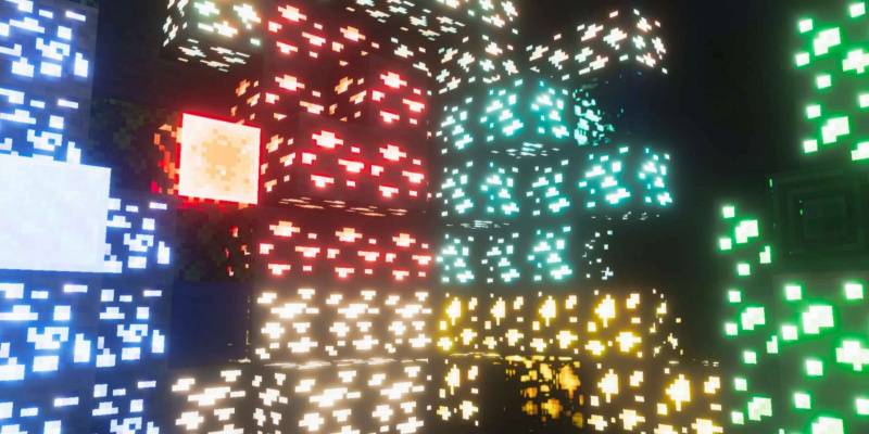 This visual expansion takes inspiration from colorful dreams. It changes colors and incorporates realistic elements to enhance gameplay. The blocks are rendered in 3D, and the minerals have a shimmering effect. The water appears lighter and has streaks of light. Both sunlight and nighttime lighting have a new look. The Nether region is also brightened and features more vibrant colors.