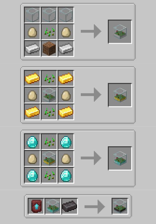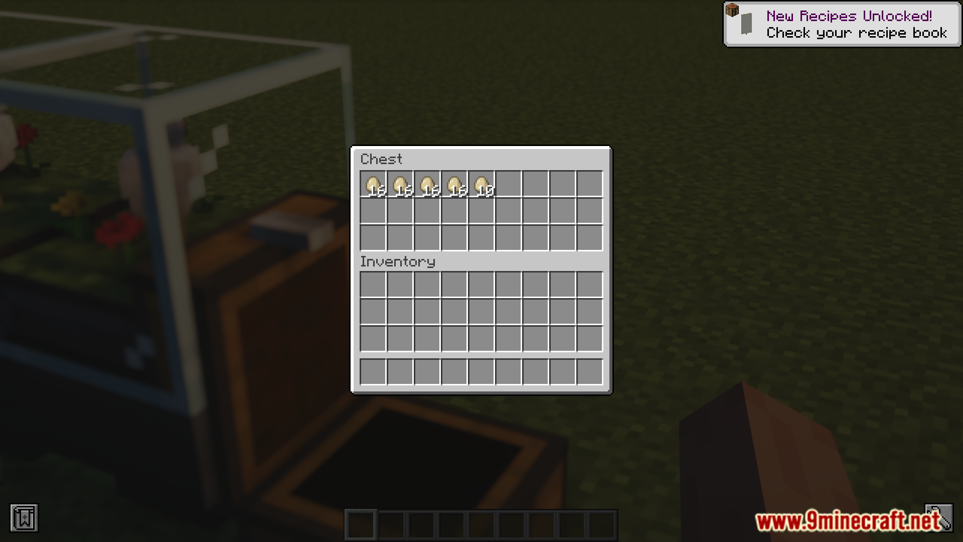 Obtaining a large number of eggs can be a lot of trouble. The best choice is to build an egg farm, but if you want to obtain a large number of eggs, you will need a large number of chickens, which will cause tremendous lag. Egg Generator Mod (1.20.1, 1.19.3) is here with the solution. Using the recipes given below, craft an egg generator block. Place the egg generator block with a hopper below it. The generator will produce eggs, which will then be collected by the hopper. Attach the hopper to a chest if required. Generator blocks come in four different tiers, and the tier determines the output of the generator.