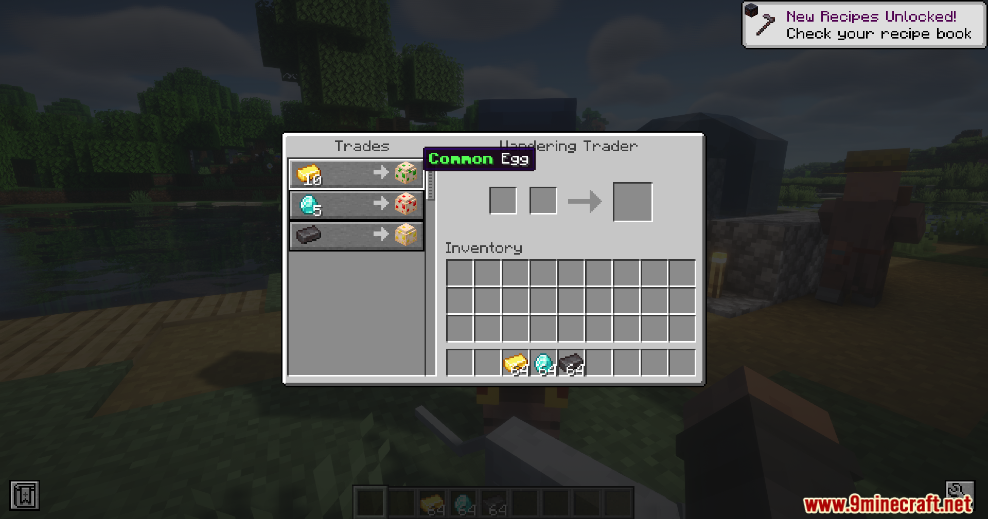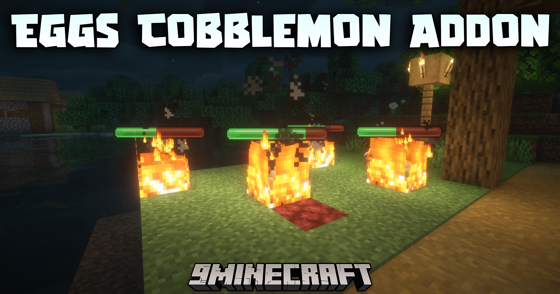Eggs Cobblemon Addon Mod (1.21.1, 1.20.1) introduces a new egg system to Cobblemon, allowing players to hatch Pokémon-like creatures from collectible eggs. These eggs can be obtained through rare trader villagers and opened using fire-based hatching mechanics.