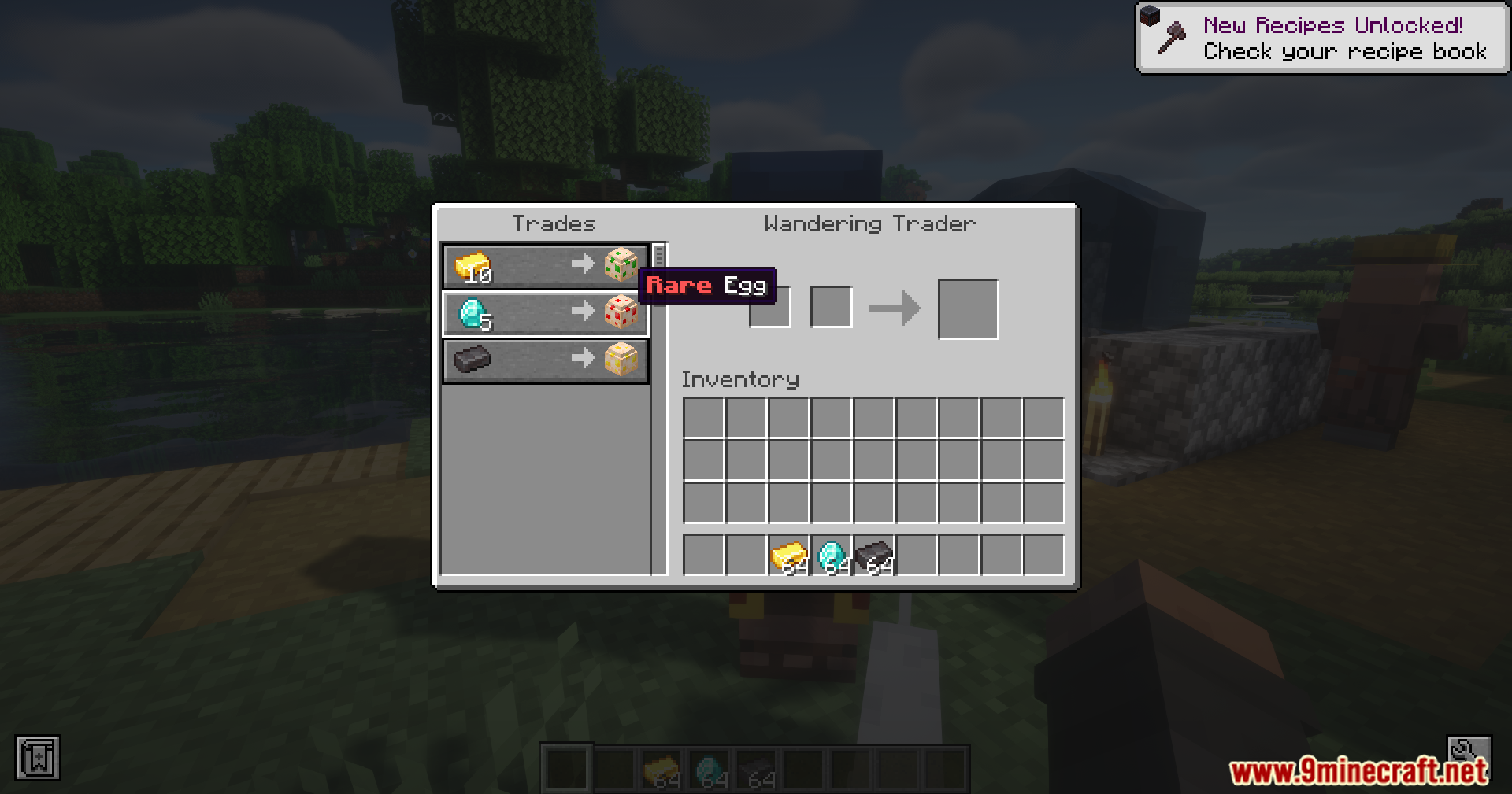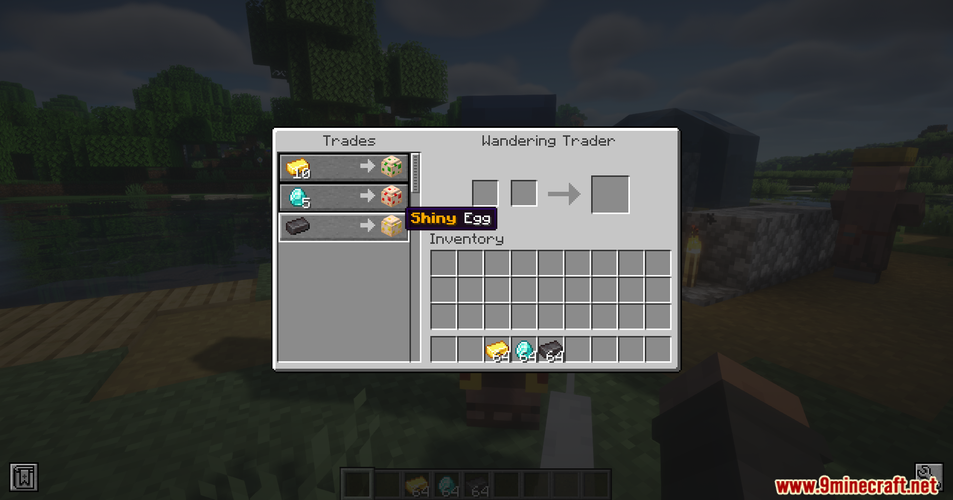 - Adds Cobblemon Eggs obtainable from a rare trader villager.
