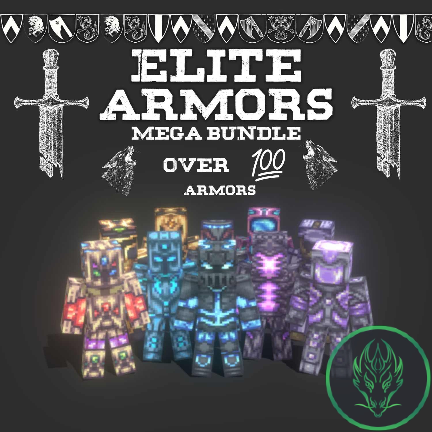 Elite Armors Mega Bundle Model is a massive Minecraft content pack offering over 100 unique armor sets, both animated and non-animated, designed to enhance gameplay and server customization.