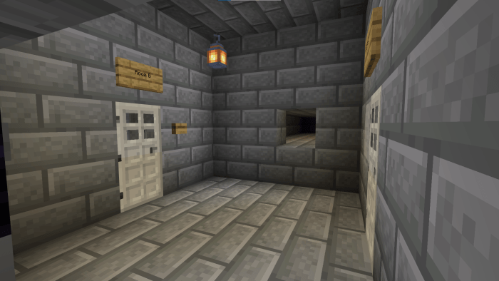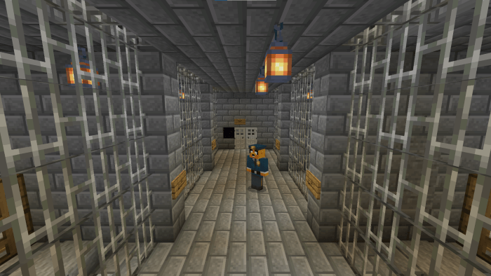 Escape From The Prison Map (1.21) features a prison with different areas such as cells, kitchen, large canteen, and backyard. While moving through each area, players can collect items and find clues to solve puzzles and open a way to escape.