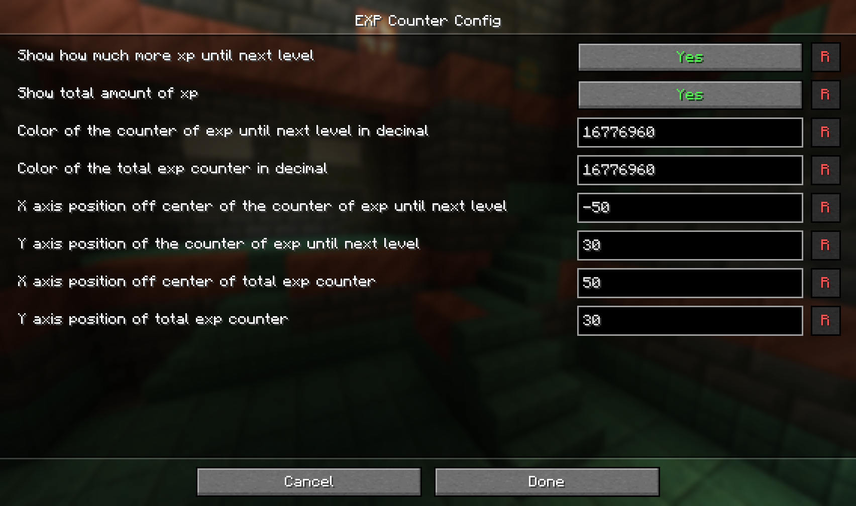 You can configure this mod directly in-game or edit the JSON file config/expcounter.json