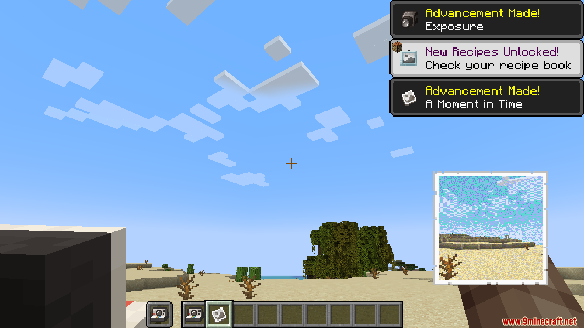 Exposure Polaroid Mod (1.21.1, 1.21) introduces an Instant Camera that produces photos in just two seconds, removing the need for film rolls and development.