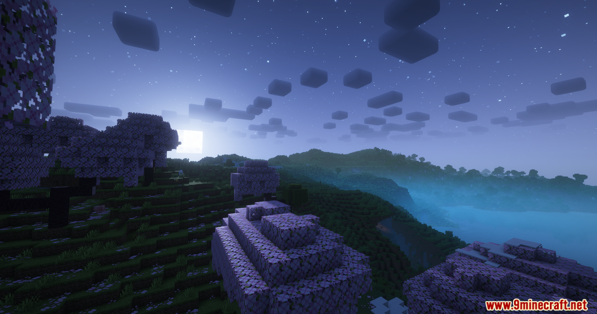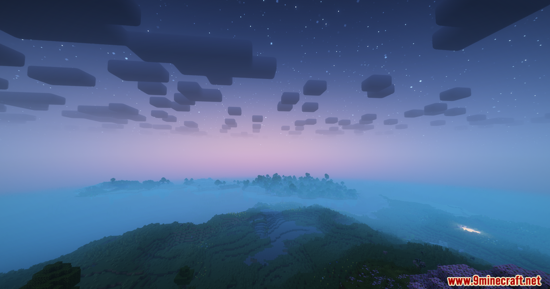 - Fantasy-blue night skies, including auroras, clouds, and nebulas