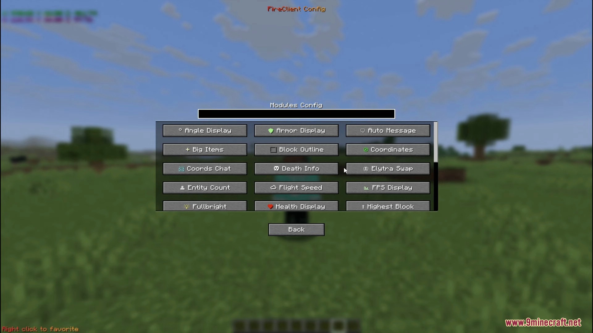 Fire Client Mod (1.21.8, 1.21.5) is a Quality of Life Utility mod with a ton of configurable modules and settings that enhance vanilla gameplay, specifically for SMPs.