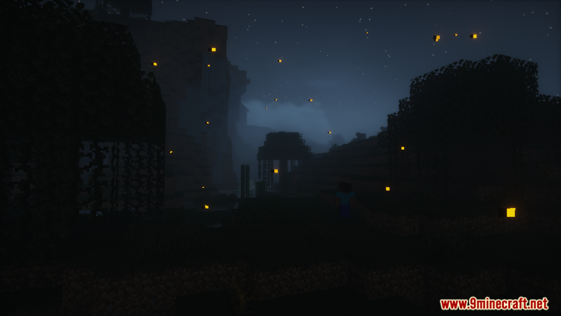 Fireflies were something that Mojang intended to add to the vanilla game. But they later dropped the idea due to many reasons. This left a lot of players disappointed. Worry no more! As Fireflies Mod (1.21.4, 1.20.1) is here to introduce fireflies into the game. With this mod installed, fireflies will spawn at nighttime when the player walks on grass blocks or leaves in a swamp biome. The fireflies are a hybrid between a particle and a mob, and therefore do not have health points on their own. They can be summoned using the /summon command.