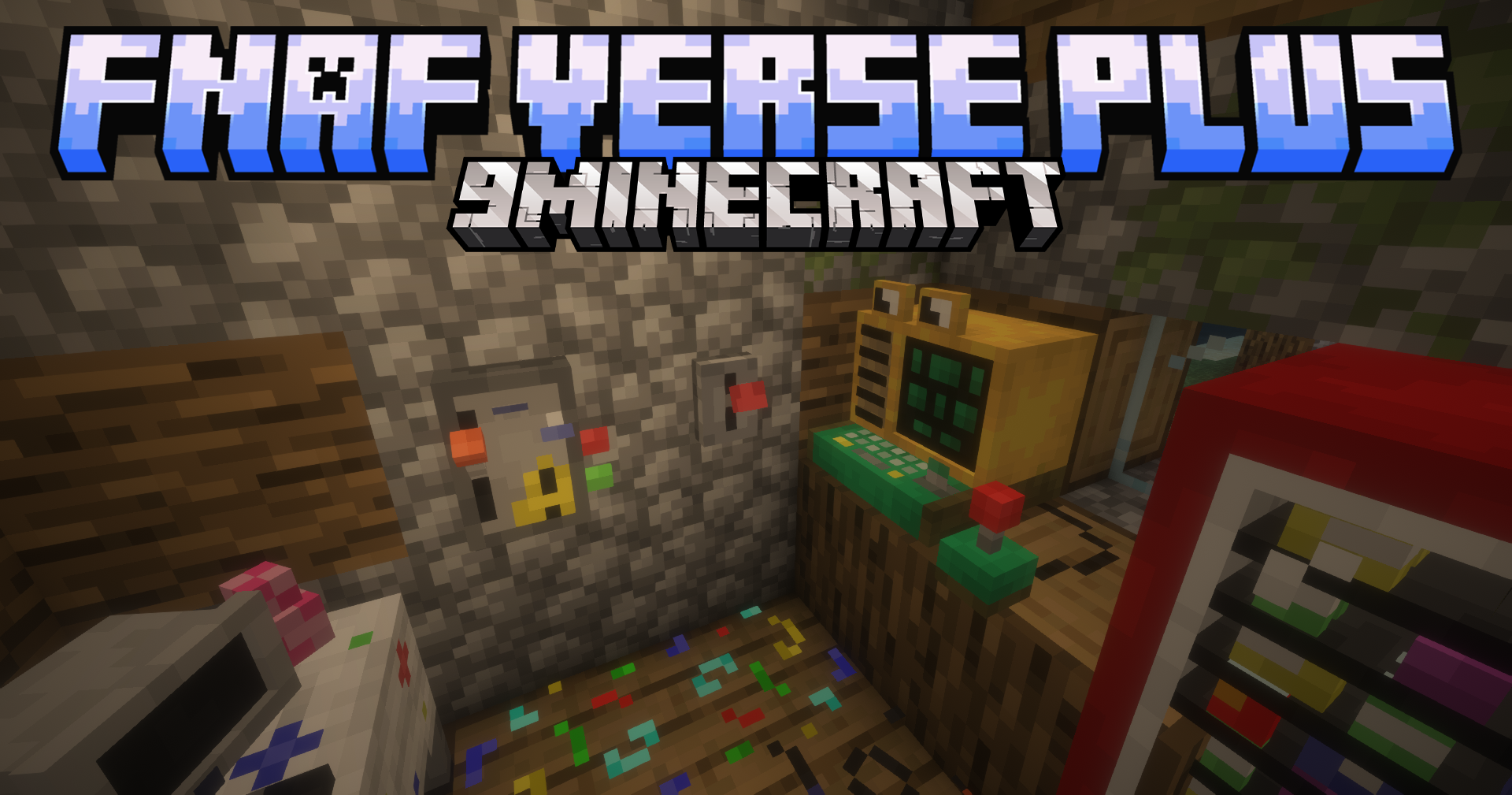 FNAF Verse PLUS Mod (1.20.1, 1.19.2) introduces the eerie world of Five Nights at Freddy’s into Minecraft through a wide range of themed blocks and decorations inspired by all the FNaF games.