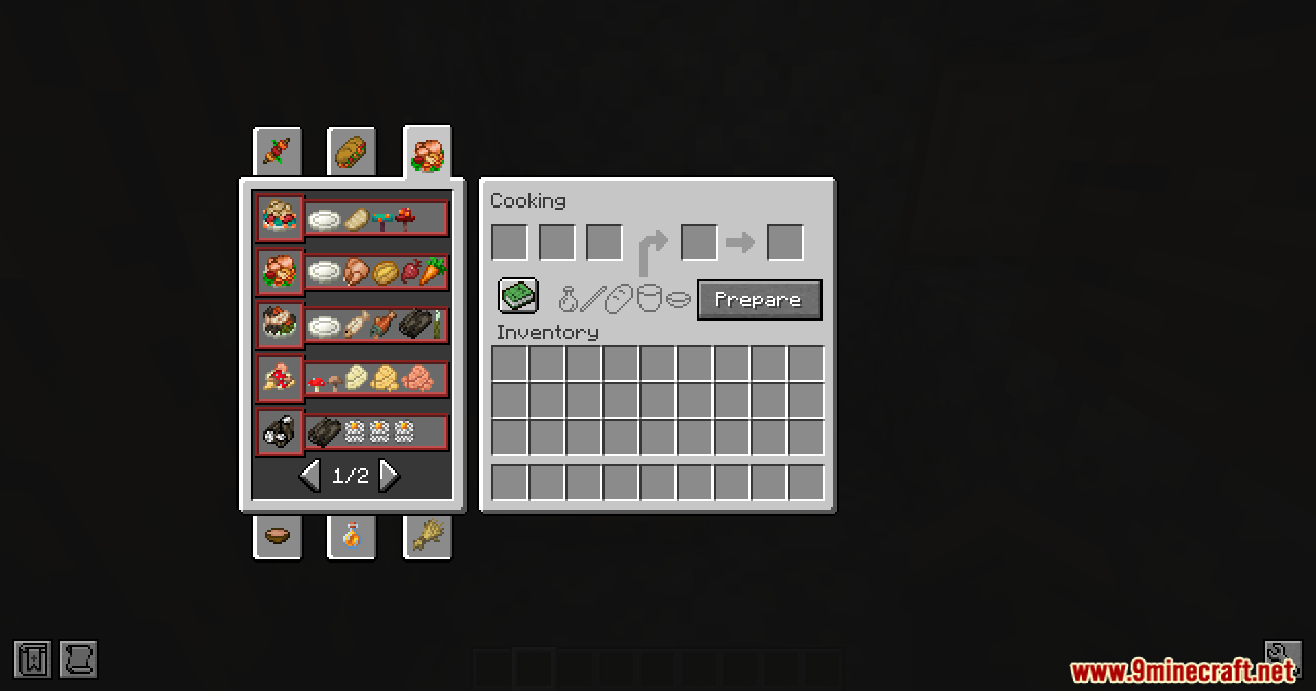 - Adds a Cooking Table used to prepare meals from base ingredients and components