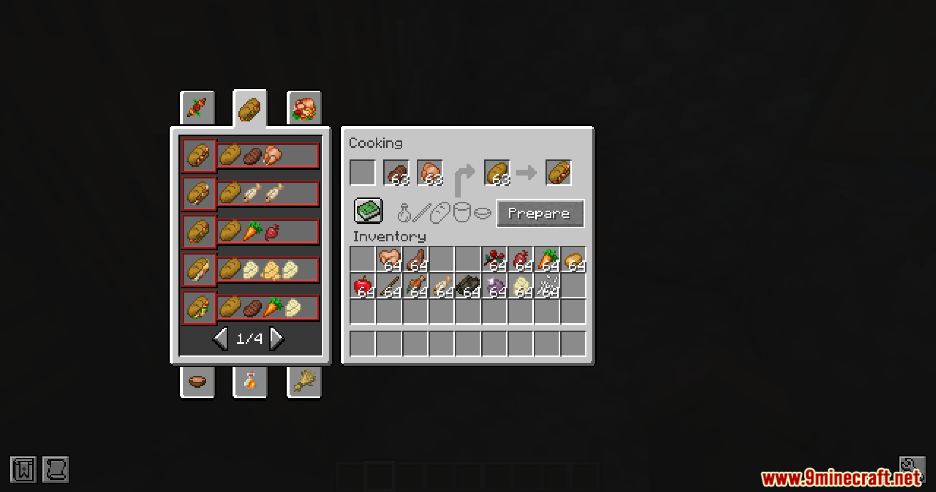 - Adds meal items that restore higher hunger and saturation and may grant status effects
