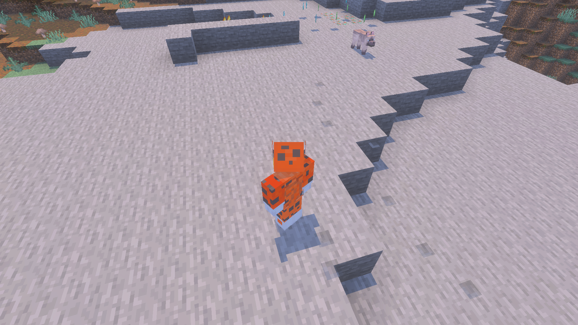 Footprints Particle Texture Pack (1.21) creates particle footprints as the player moves. Each step leaves a temporary mark on the ground that disappears after a few seconds.
