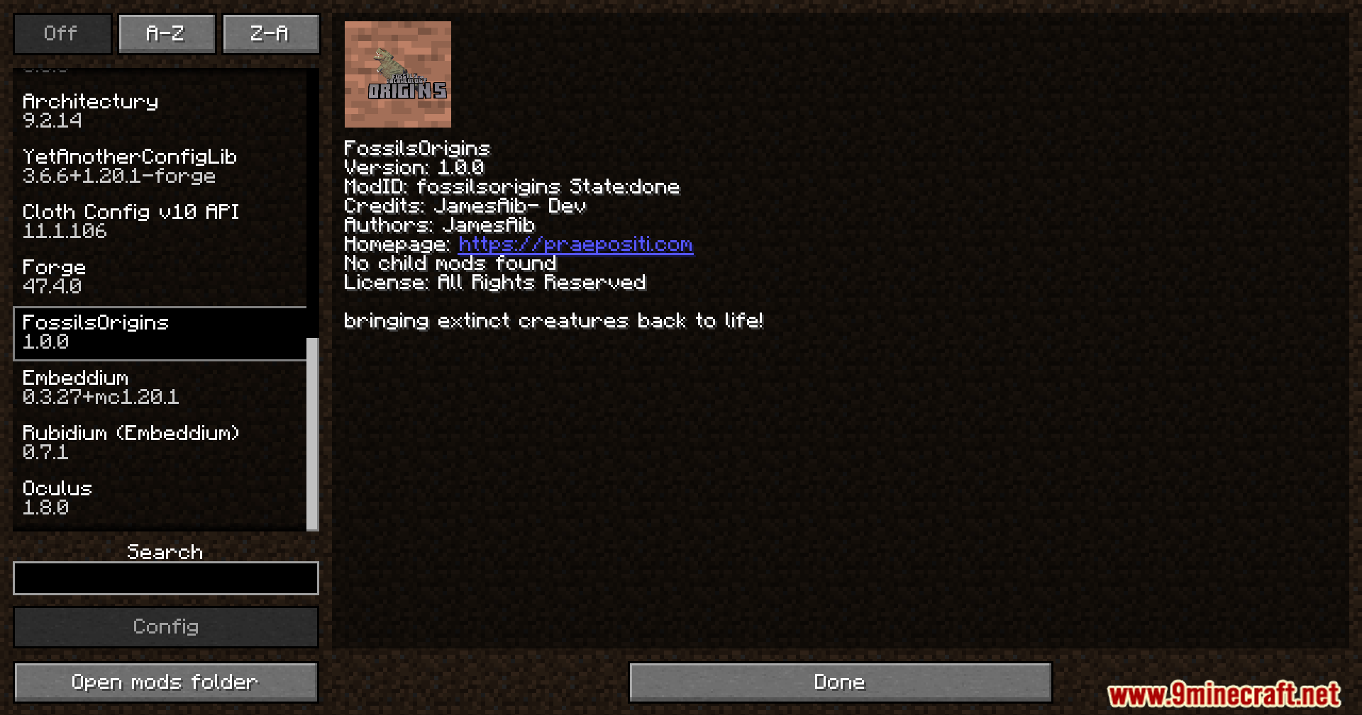 Fossils And Archeology Origins Mod (1.20.4, 1.19.4) bringing prehistoric life back to Minecraft through excavation, genetics, and discovery. It lets players uncover fossils, extract DNA, and resurrect extinct creatures.