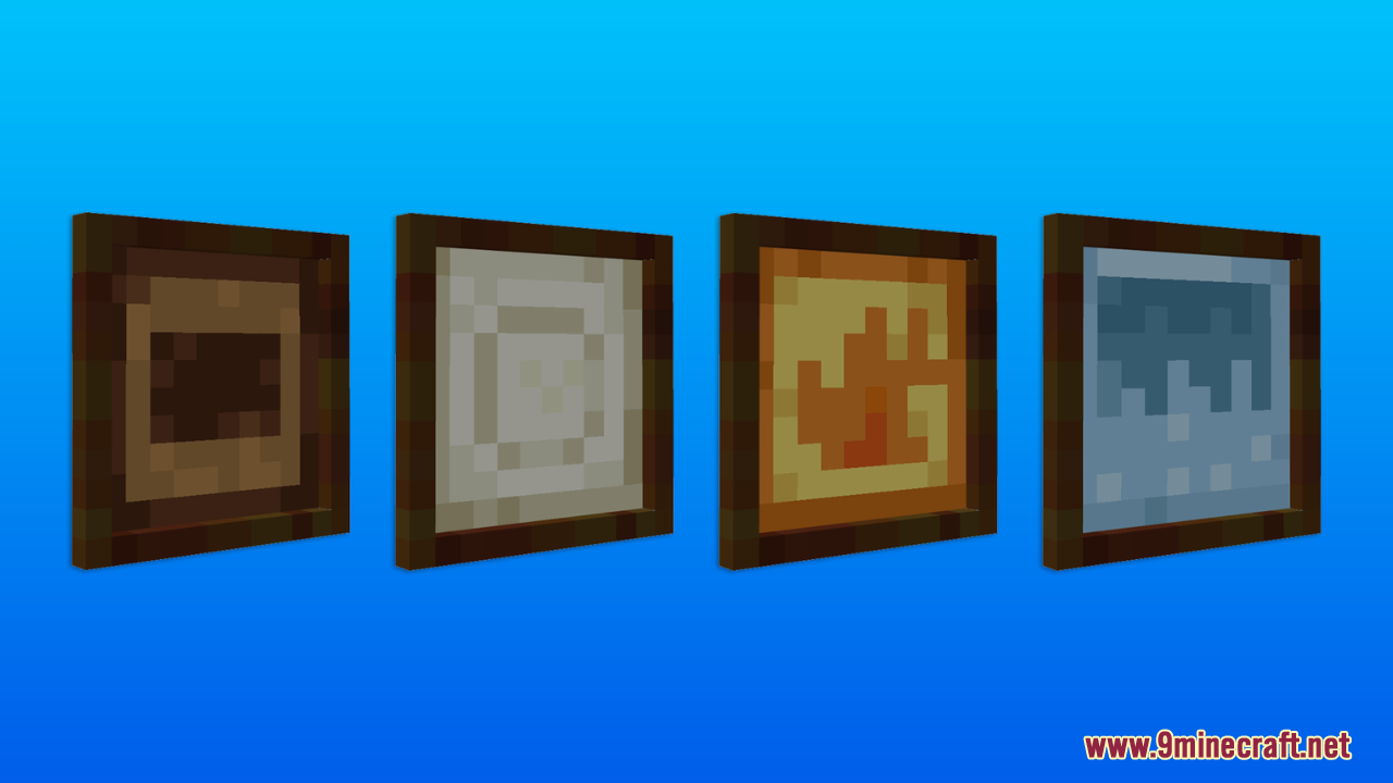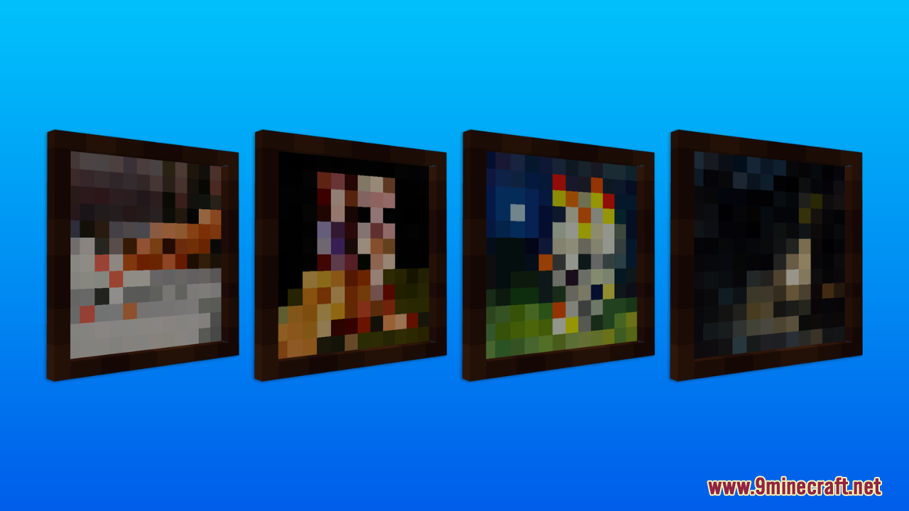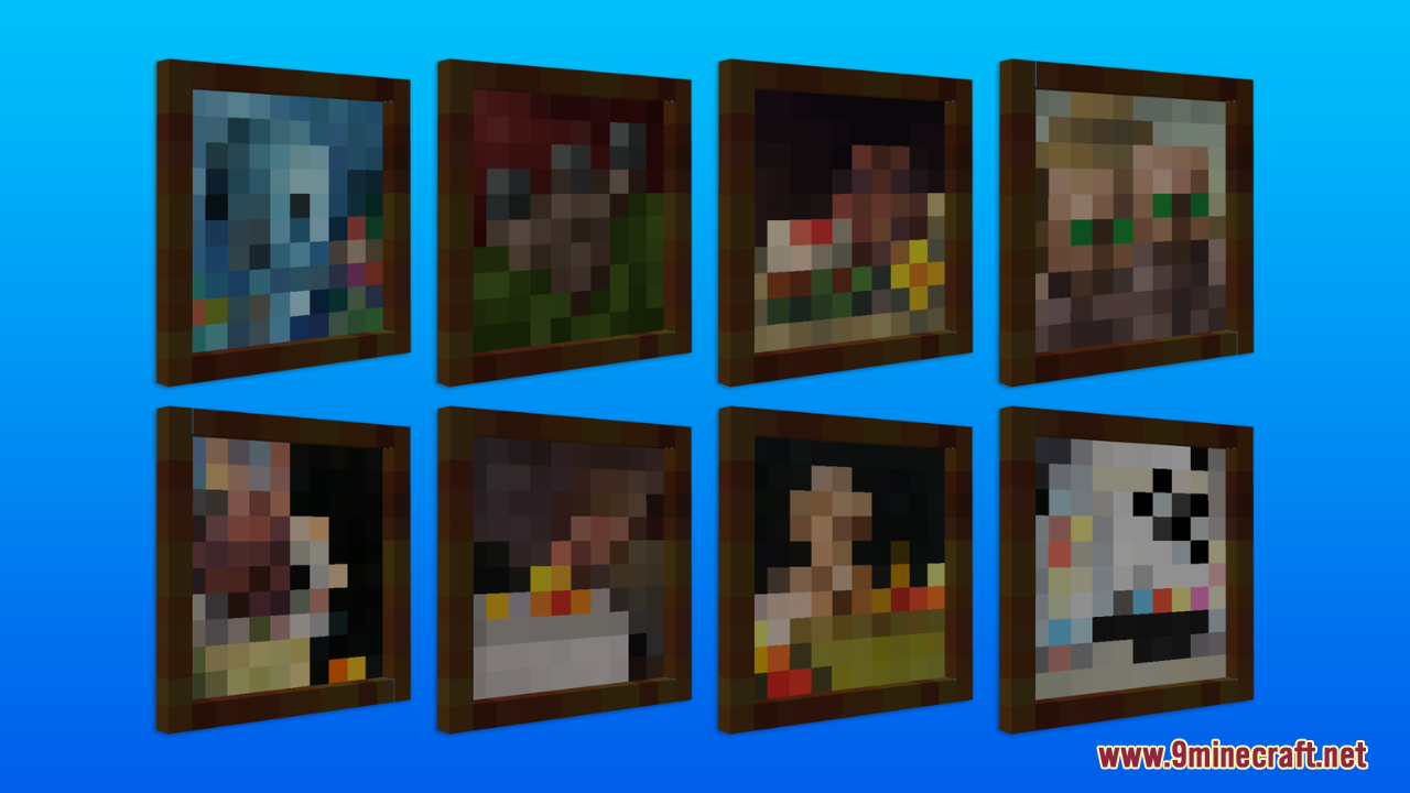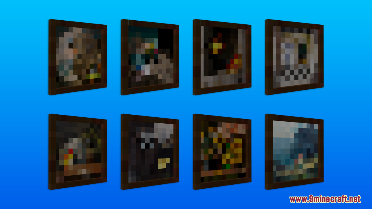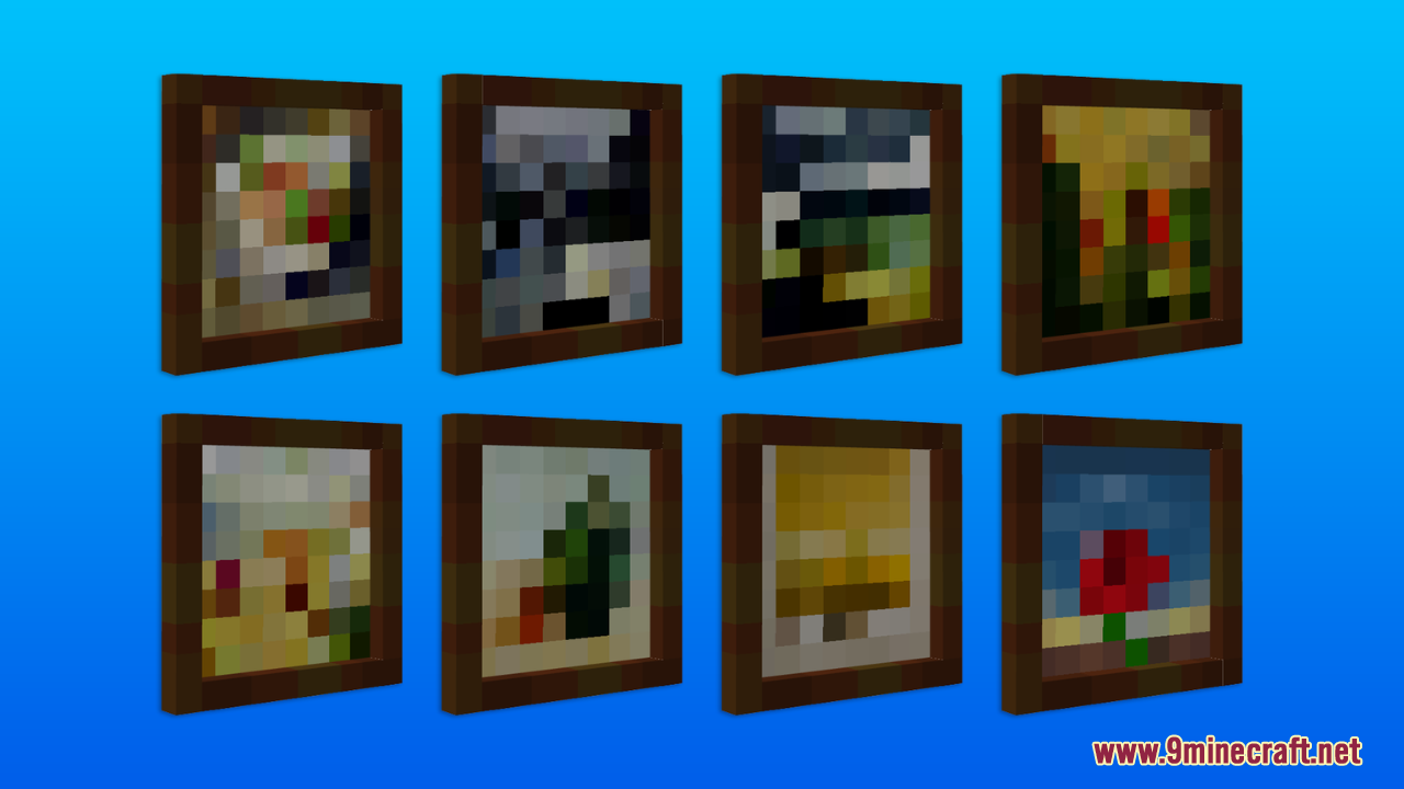 Fresh Paintings Resource Pack (1.21.9, 1.20.1) aims to elevate Minecraft’s art by giving both paintings and item frames fully 3D models and unique sprites. Each painting now has its own distinct image (sprite) when viewed in your GUI or hotbar, making it easier to tell what art you’re holding before placing it. When held in hand or placed, paintings and frames appear as three-dimensional objects, adding immersion and visual depth while preserving the original charm.