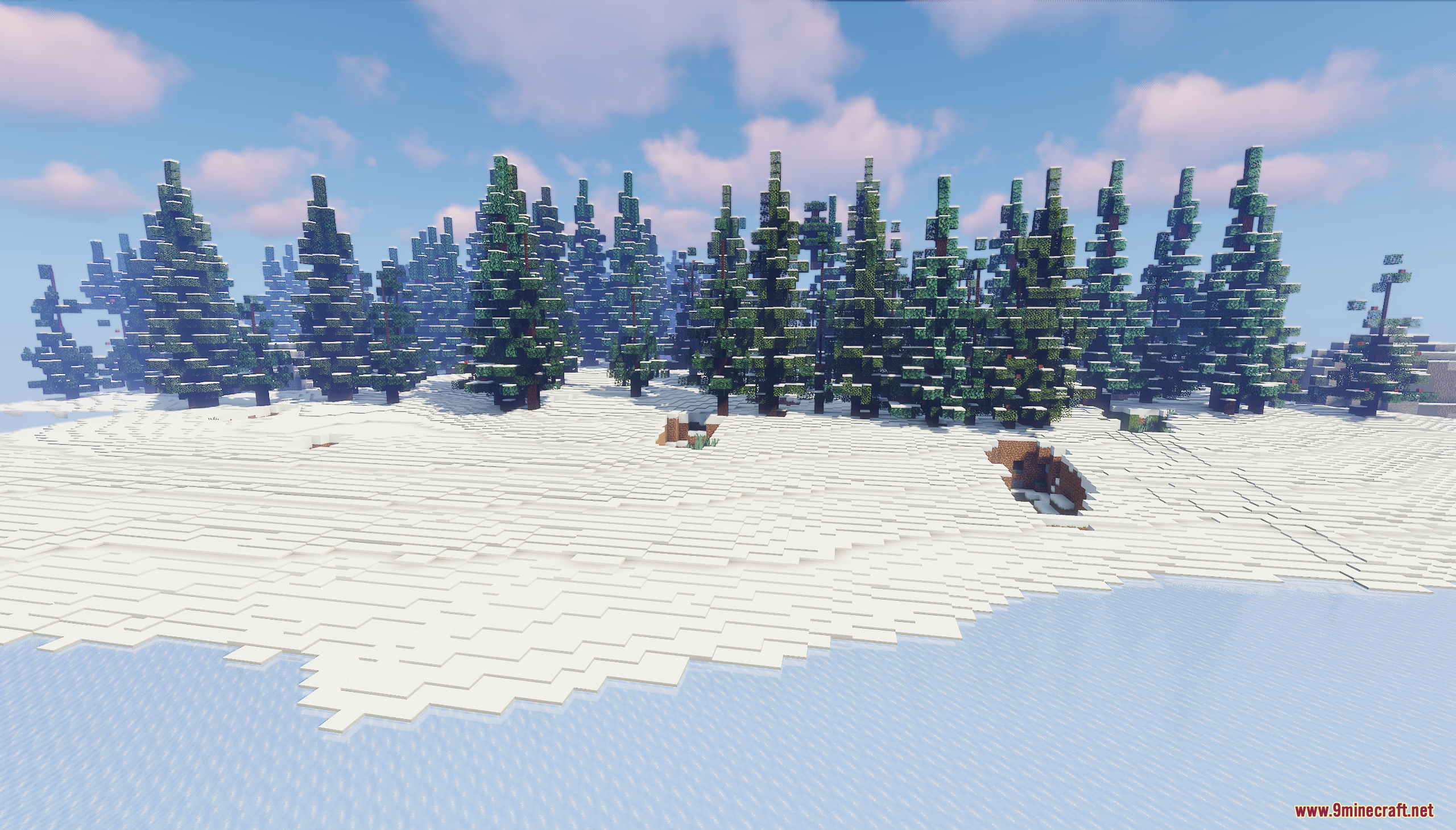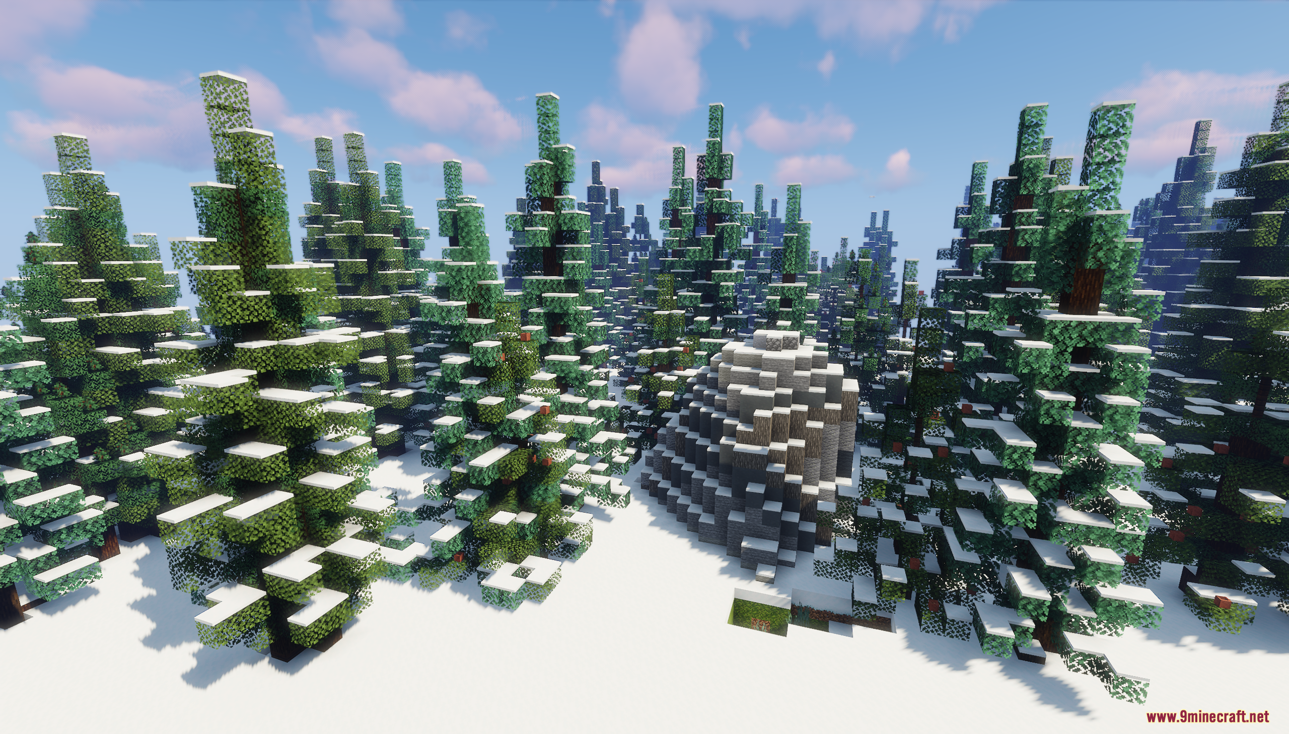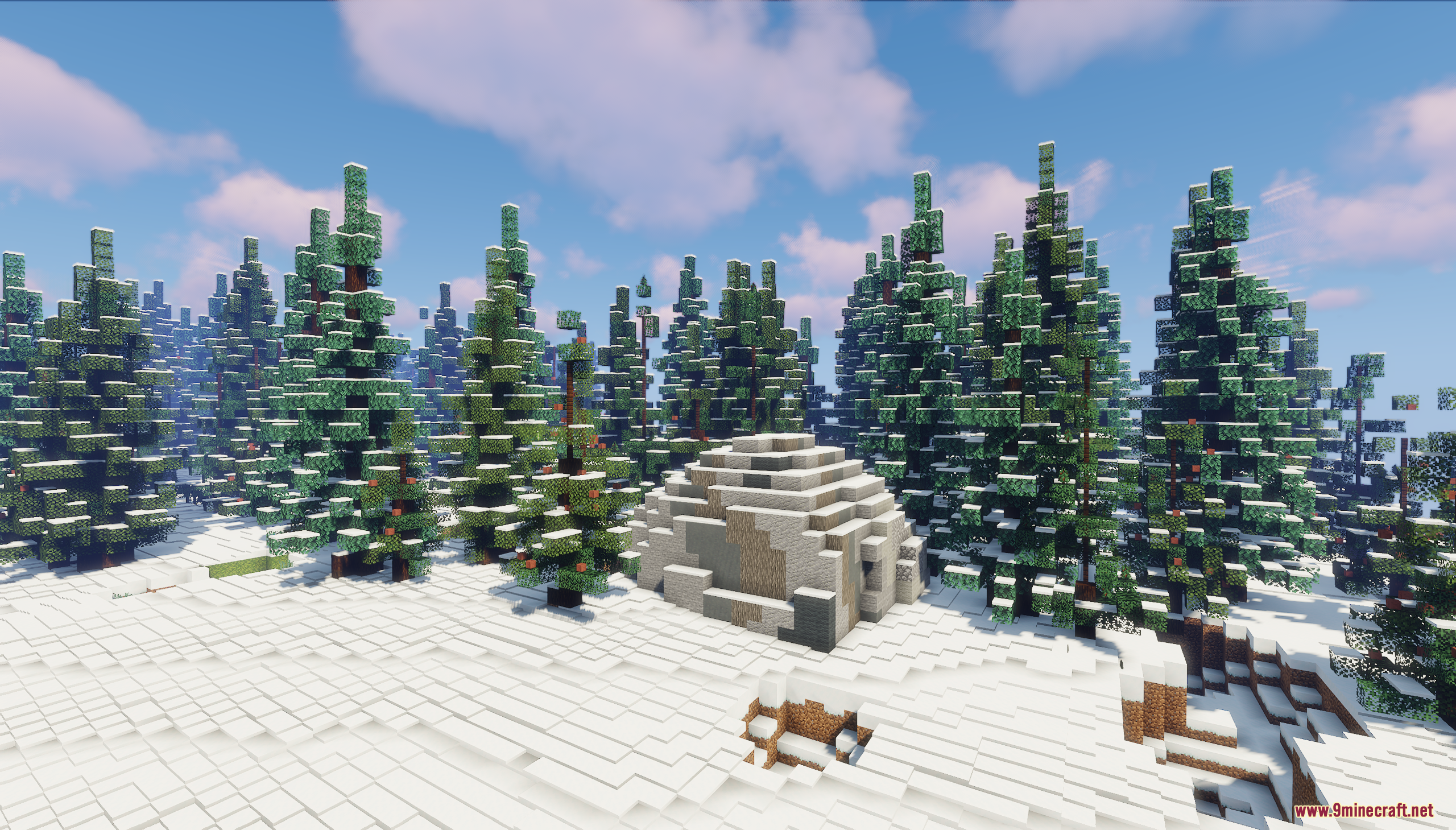 Frozen Tundra Map (1.21.11, 1.20.1) transforms the Minecraft world into a compact yet highly dynamic frozen wilderness filled with snow-covered plains, winding rivers, towering mountains, and vast taiga forests with custom trees. A massive mountain region with detailed stone texturing dominates the landscape, creating a harsh but beautiful survival setting. With the world border shrunk and spruce as the only wood type available, resources feel scarce and every build must adapt to the cold environment, making this map perfect for players who want a focused, immersive survival challenge in an unforgiving tundra.
