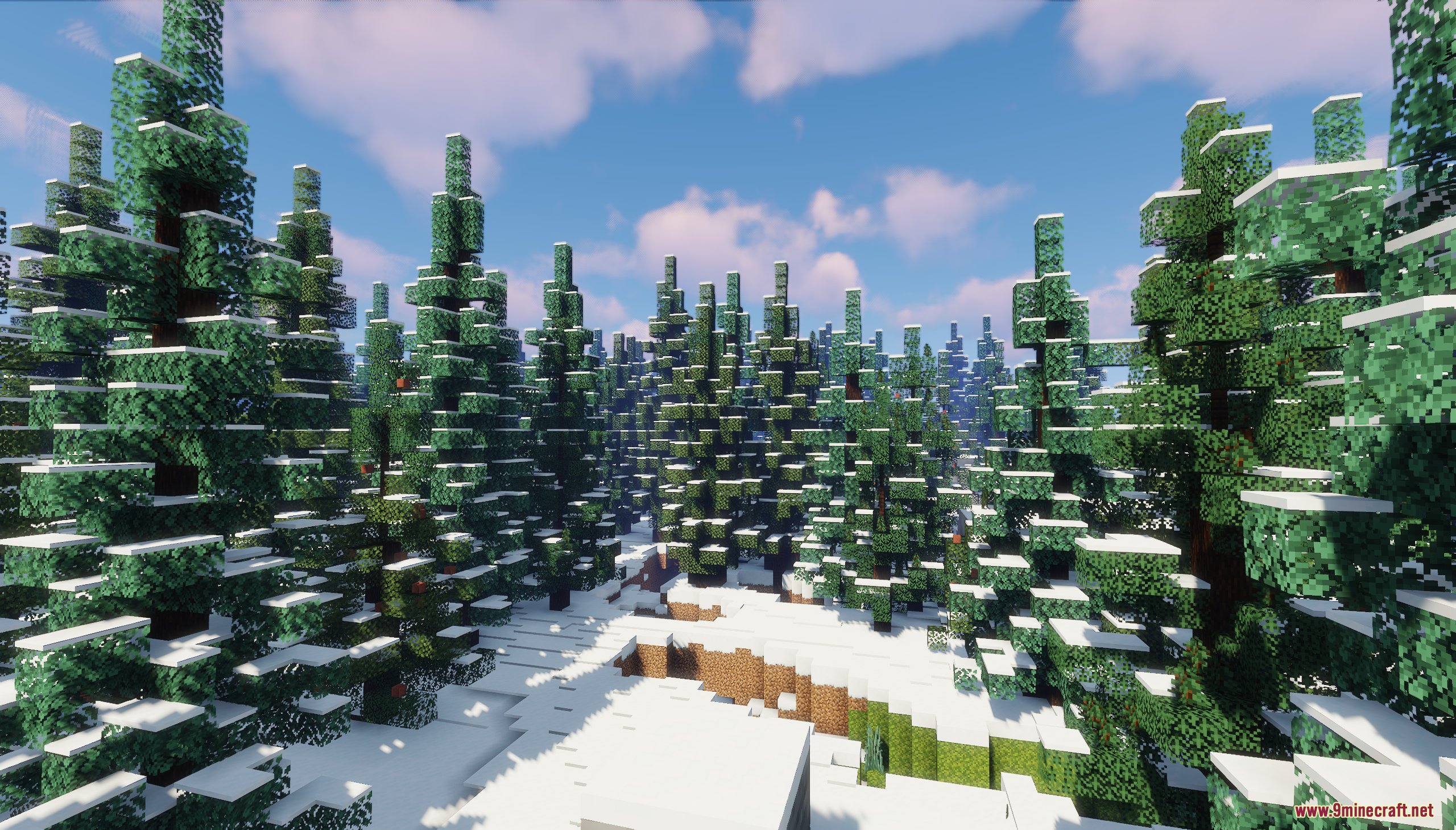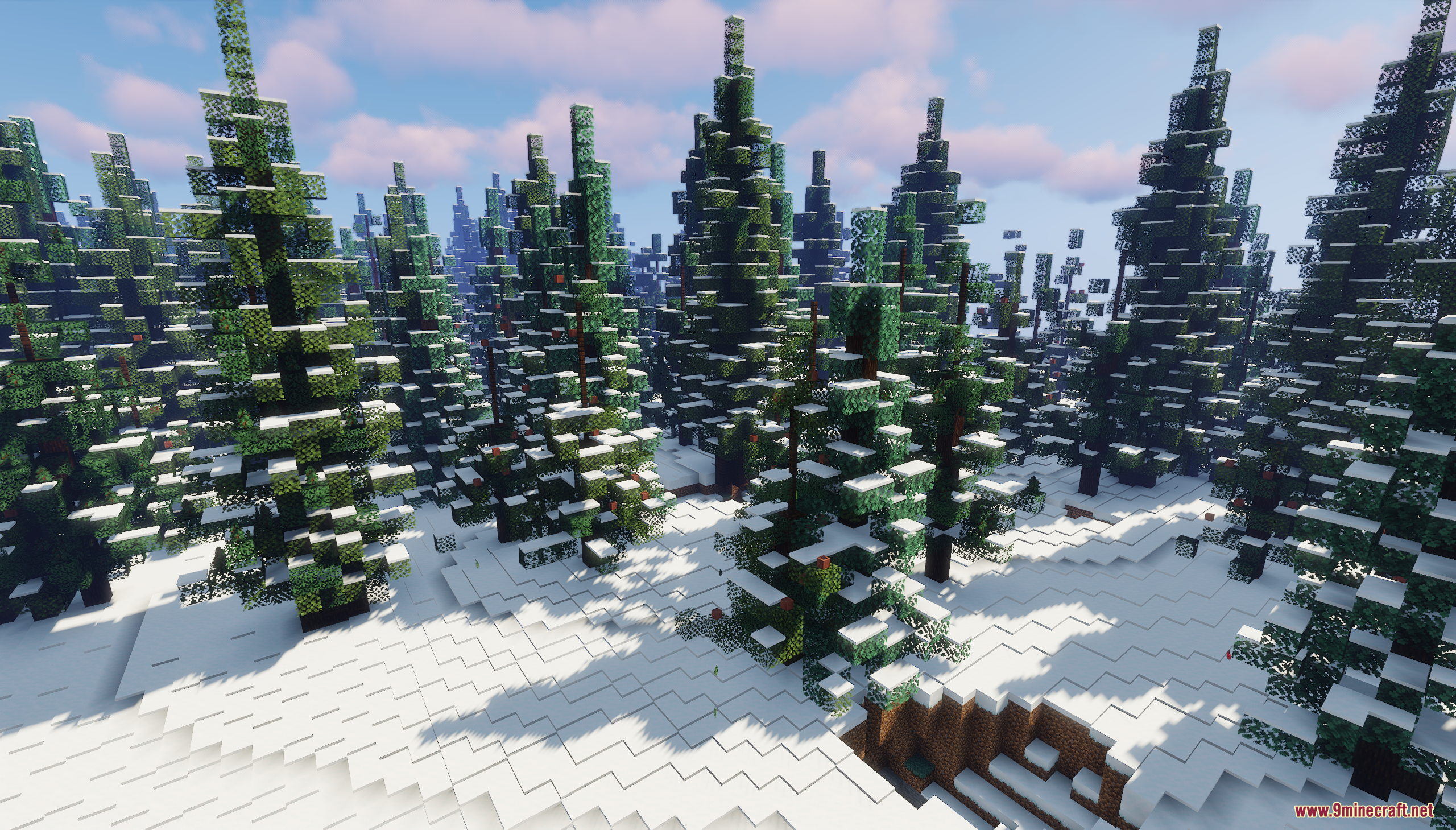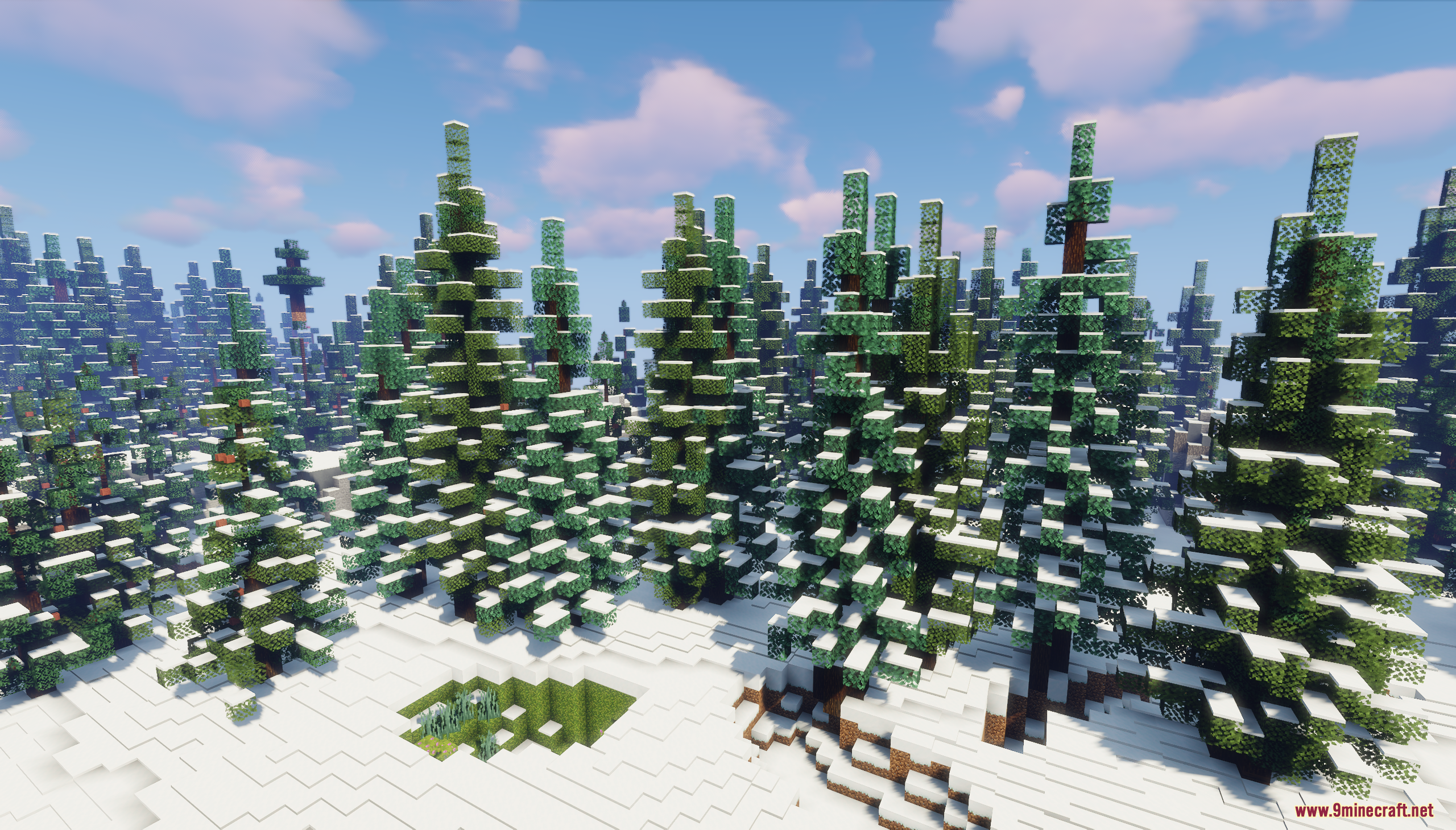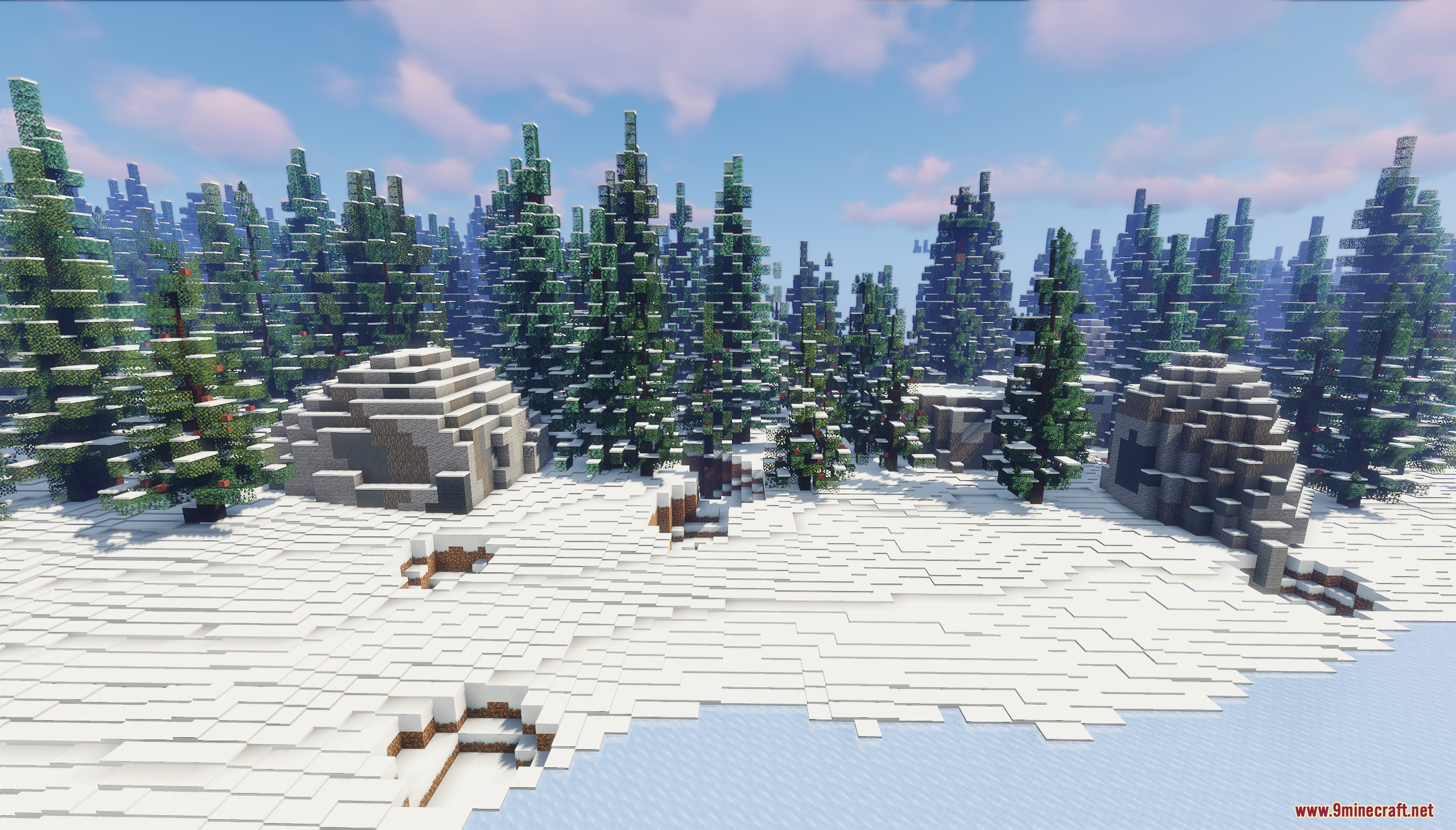 Frozen Tundra Map (1.21.11, 1.20.1) transforms the Minecraft world into a compact yet highly dynamic frozen wilderness filled with snow-covered plains, winding rivers, towering mountains, and vast taiga forests with custom trees. A massive mountain region with detailed stone texturing dominates the landscape, creating a harsh but beautiful survival setting. With the world border shrunk and spruce as the only wood type available, resources feel scarce and every build must adapt to the cold environment, making this map perfect for players who want a focused, immersive survival challenge in an unforgiving tundra.