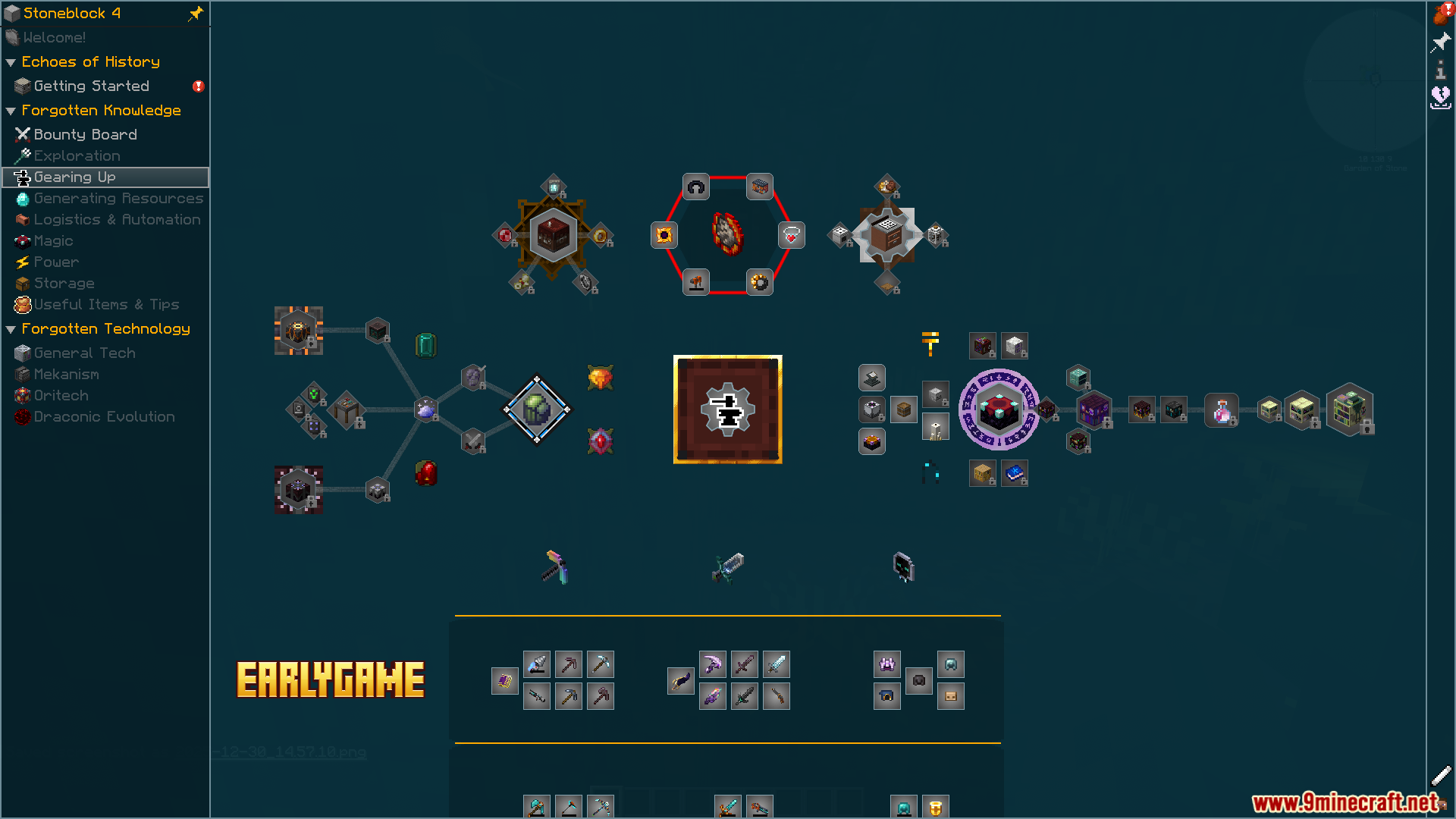 - Central progression artifact with 15+ multiblock upgrades, unlocking new crafting tiers and technologies.