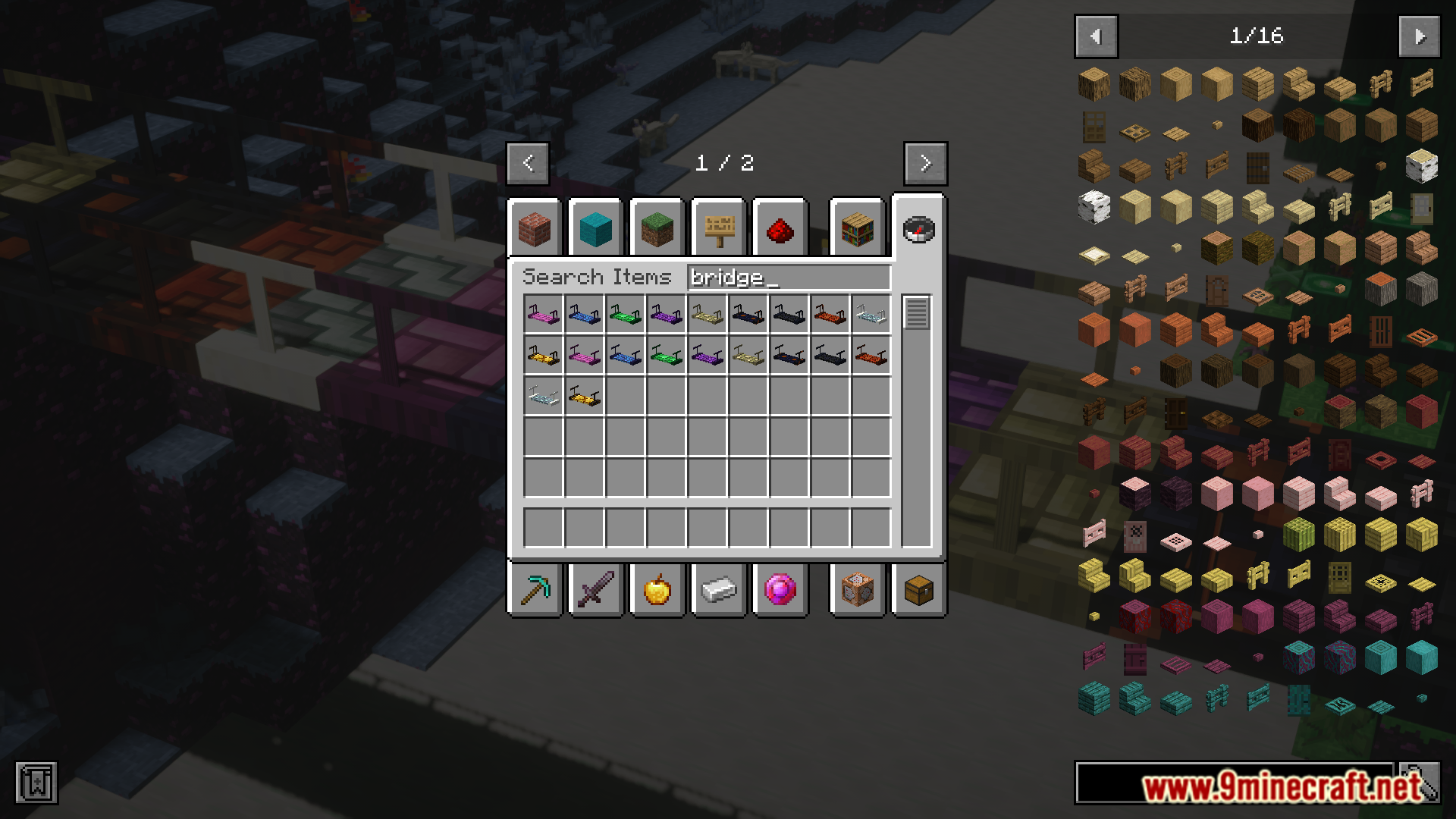 Gaia Dimension Wood Bridges Addon Mod (1.20.6, 1.20.1) is an addon mod for the Gaia Dimensions mod. Gaia Dimensions is a mod that introduces a new dimension with plenty of new biomes into the game. Each biome comes with its own wood variants and such. This mood introduces new bridges that can be crafted with each of these wood variants, allowing you to create a variety of beautiful looking bridges with ease.