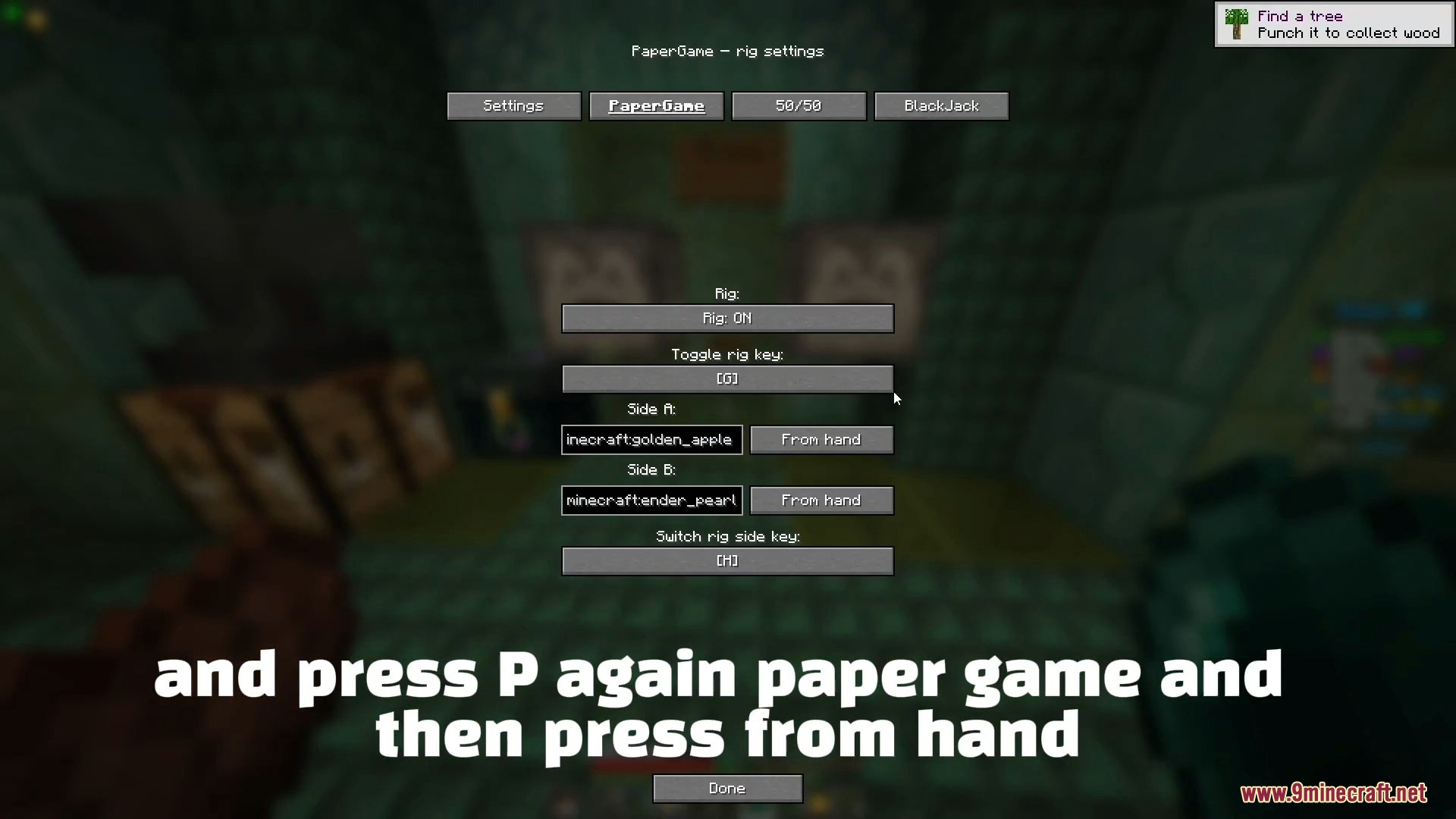 Pin-game to open the Gamble Rig interface. - Select the Paper Game option (currently supported mode).