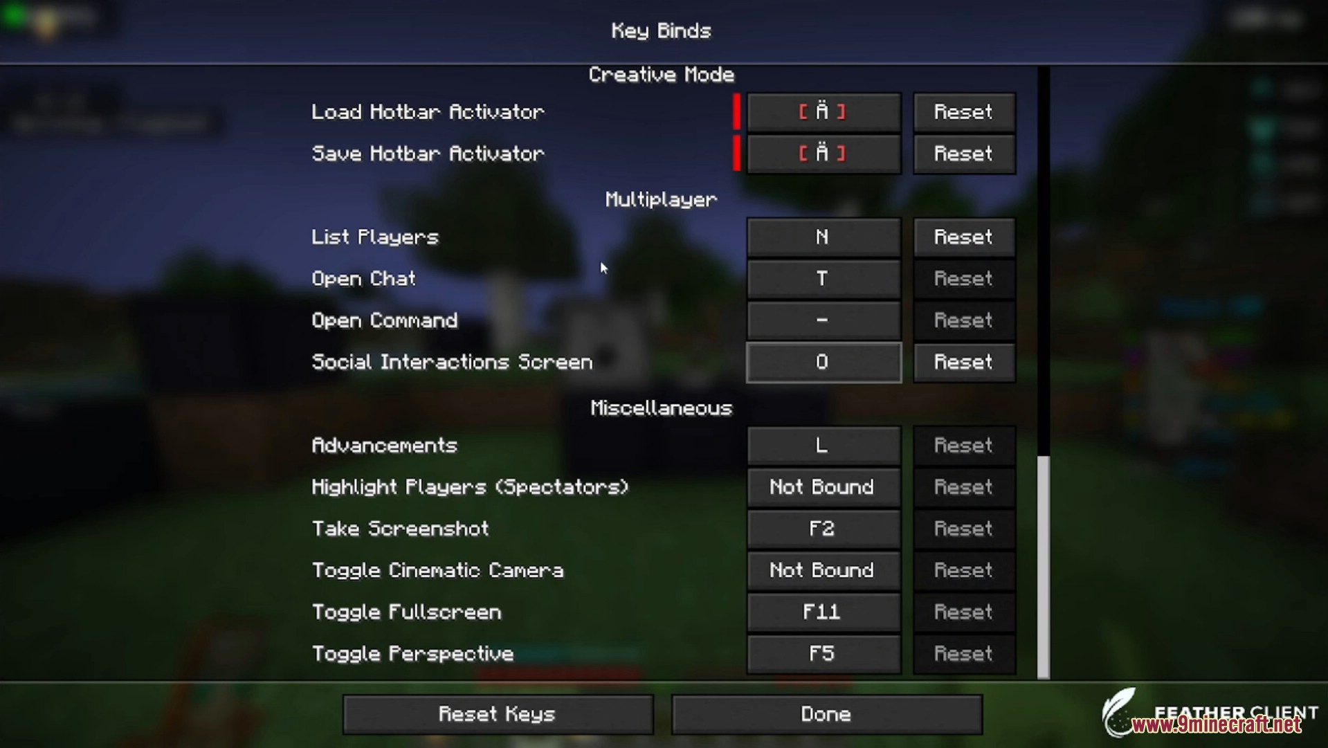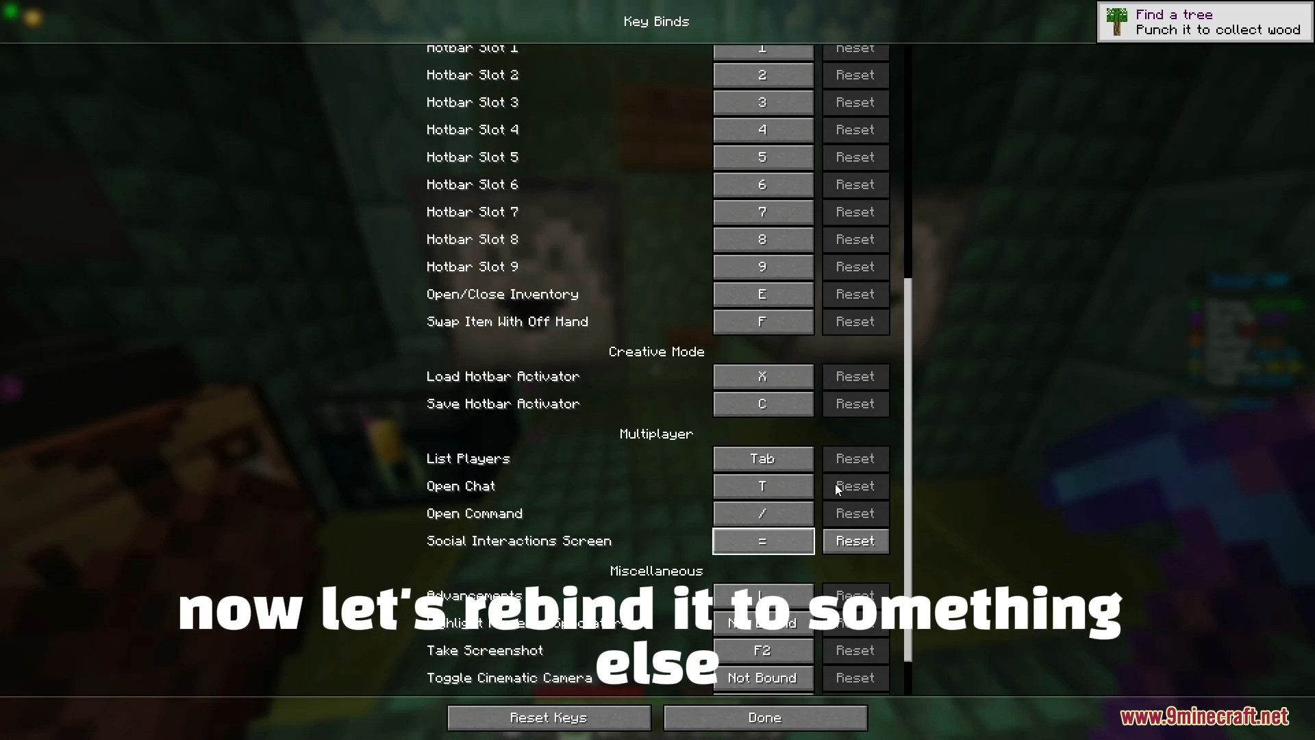 - Open Options → Controls → Key Binds.